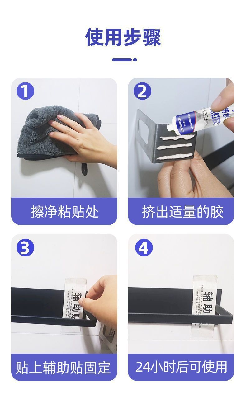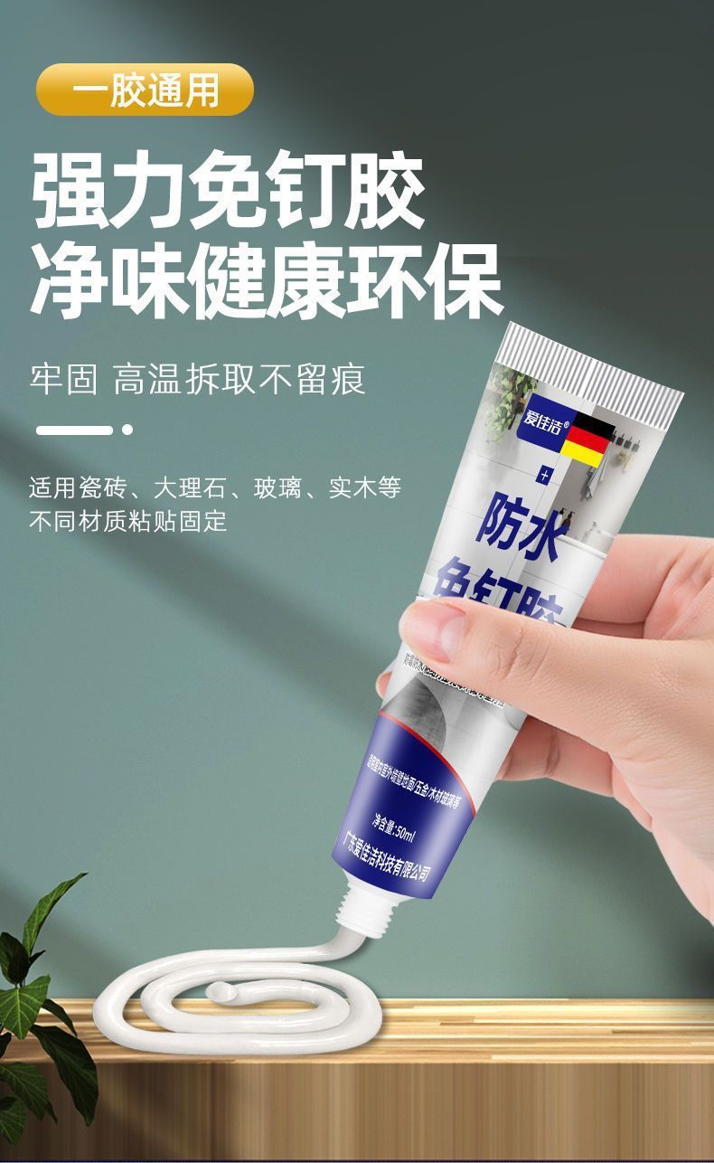 Quick drying nail free glue strong adhesive wall non perforated waterproof ceramic tile rack mirror hook glass sealing glue