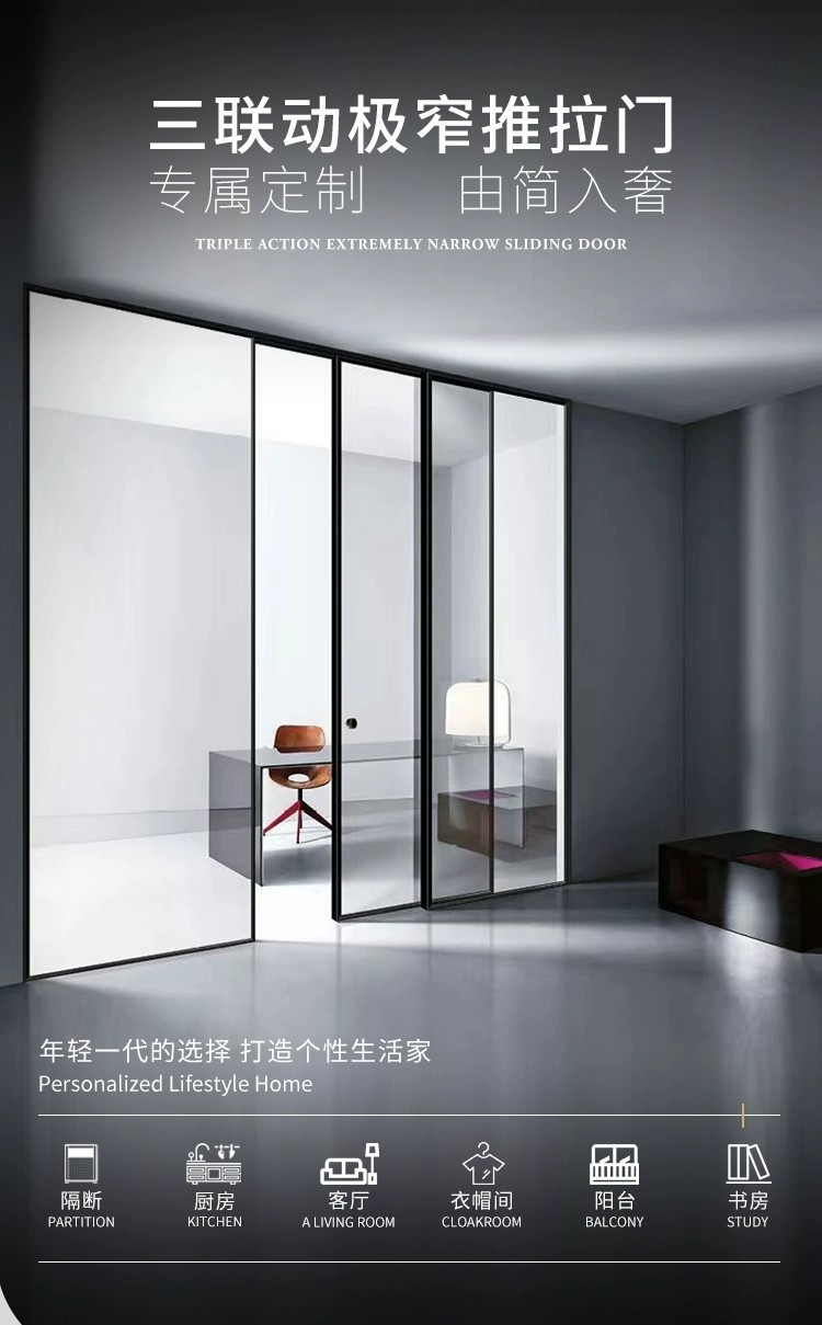 Rcs Changhong glass sliding door sliding door net popular extremely narrow frame partition titanium magnesium aluminum alloy kitchen balcony living room