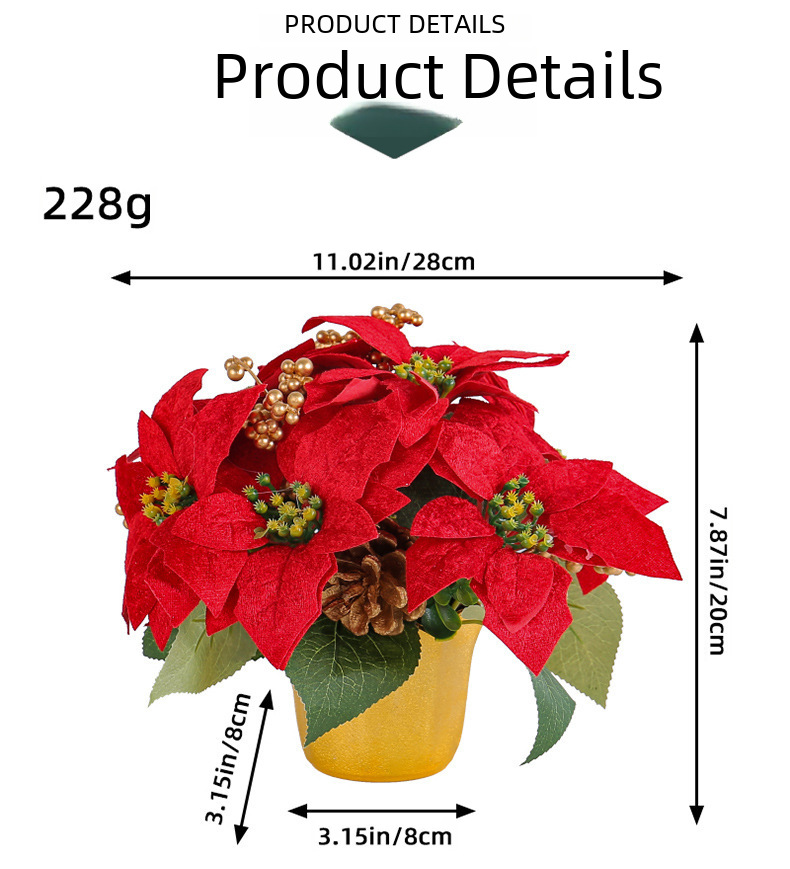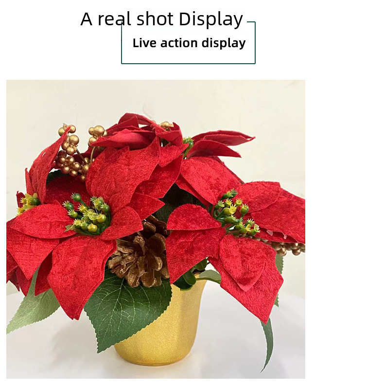 Red Christmas flower potted desktop decoration Cangyan new artificial flower restaurant bar Christmas garland decorations