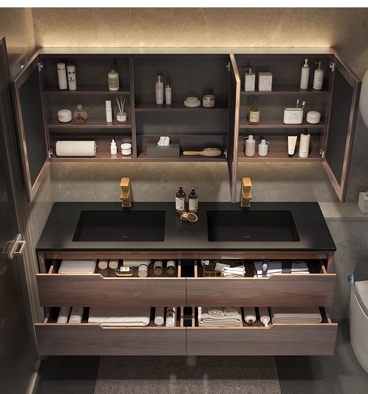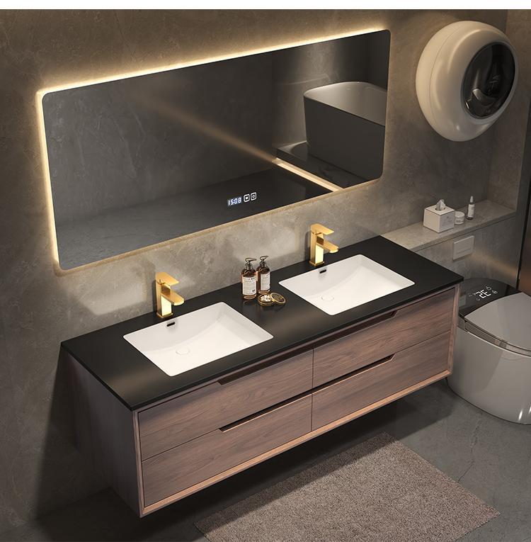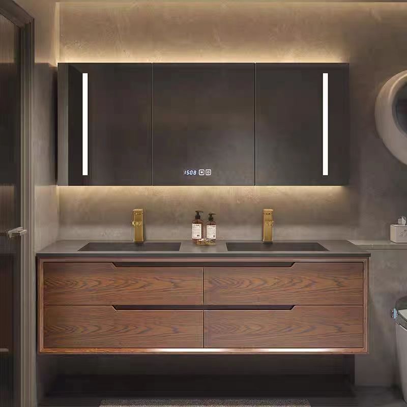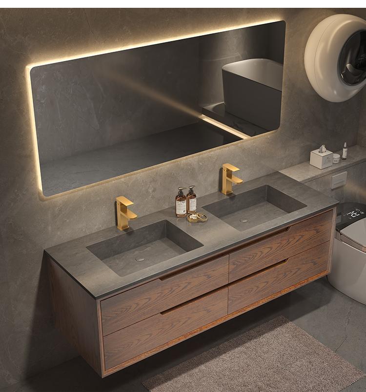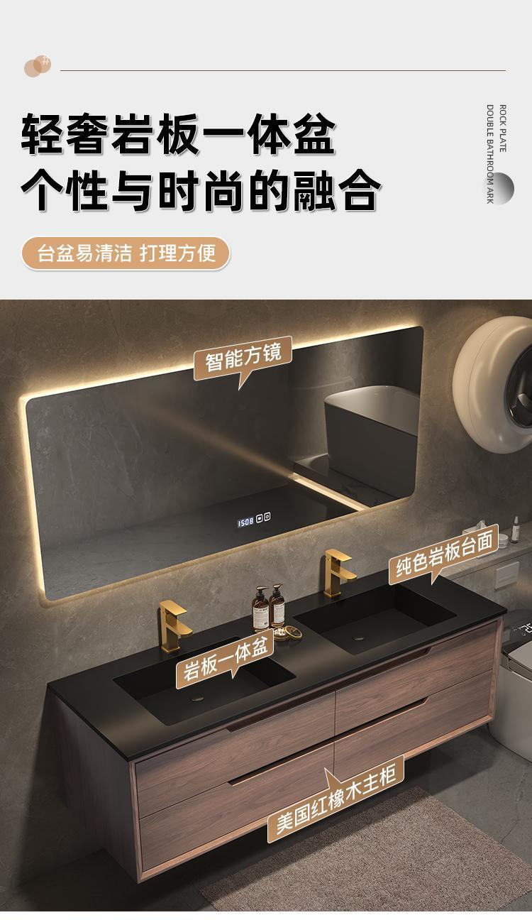 Red Oak Bathroom Cabinet Combination Rock Plate Seamless Integrated Washstand Light Luxury Washbasin Washbasin Double Basin Smart Mirror