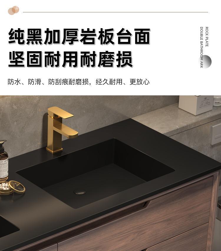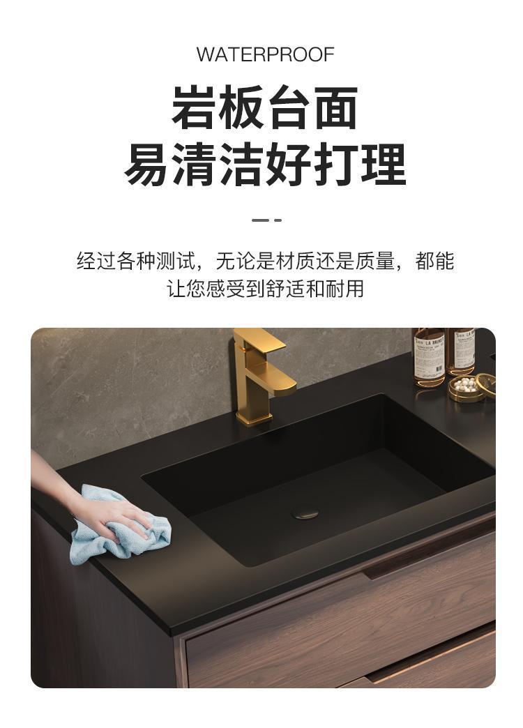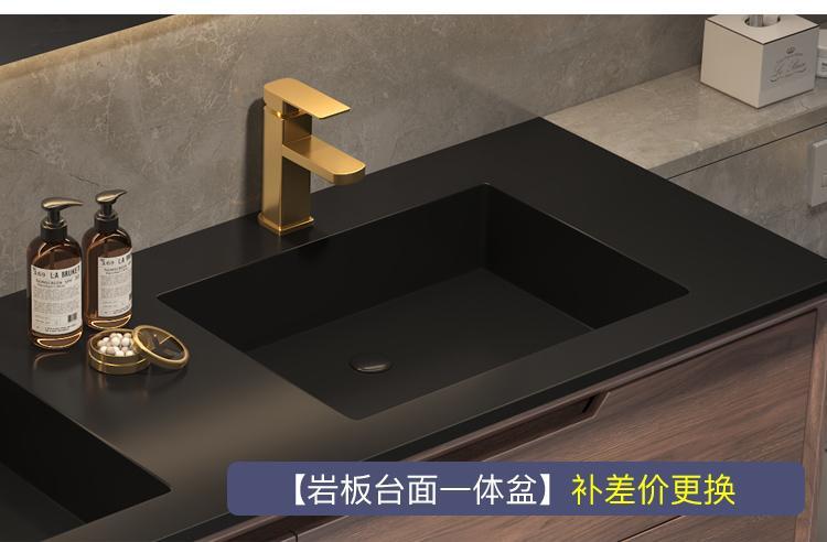 - Rock plate integrated basin intelligent square mirror -80CM American red oak cabinet