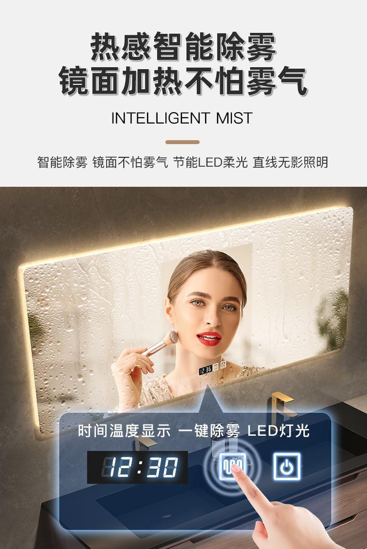 - Rock plate ceramic basin smart square mirror -70CM American red oak cabinet