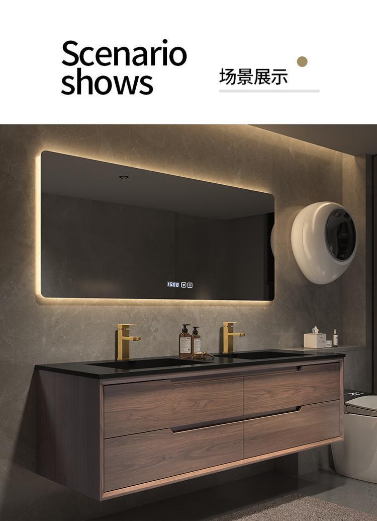 - Rock plate seamless ceramic basin smart mirror cabinet -160CM American red oak cabinet