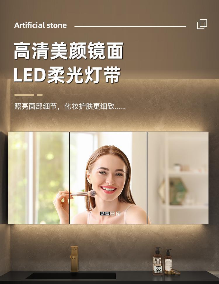 - Rock plate integrated basin intelligent mirror cabinet -100CM American red oak cabinet