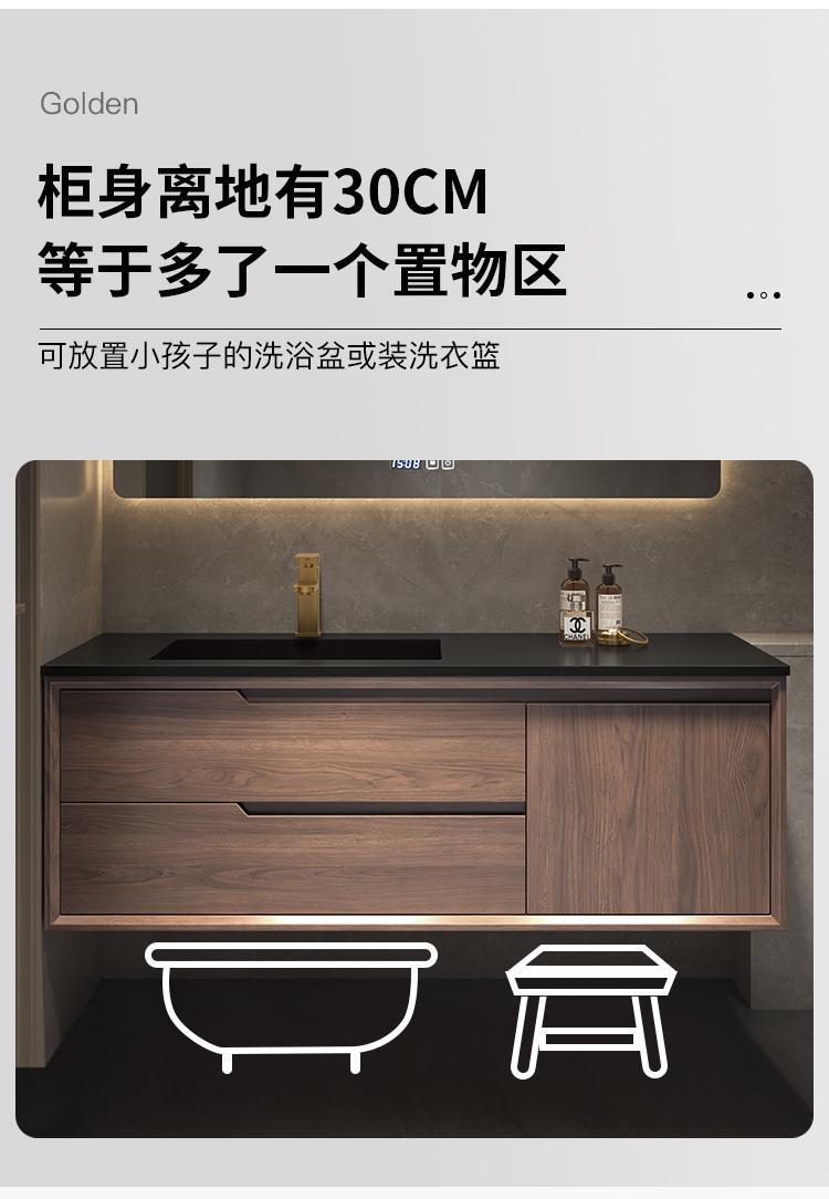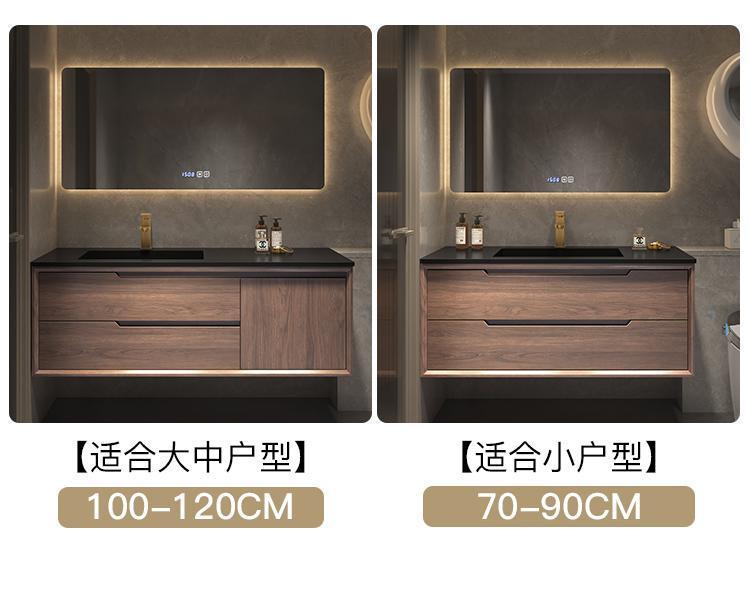 - Rock plate integrated basin intelligent square mirror -70CM American red oak cabinet