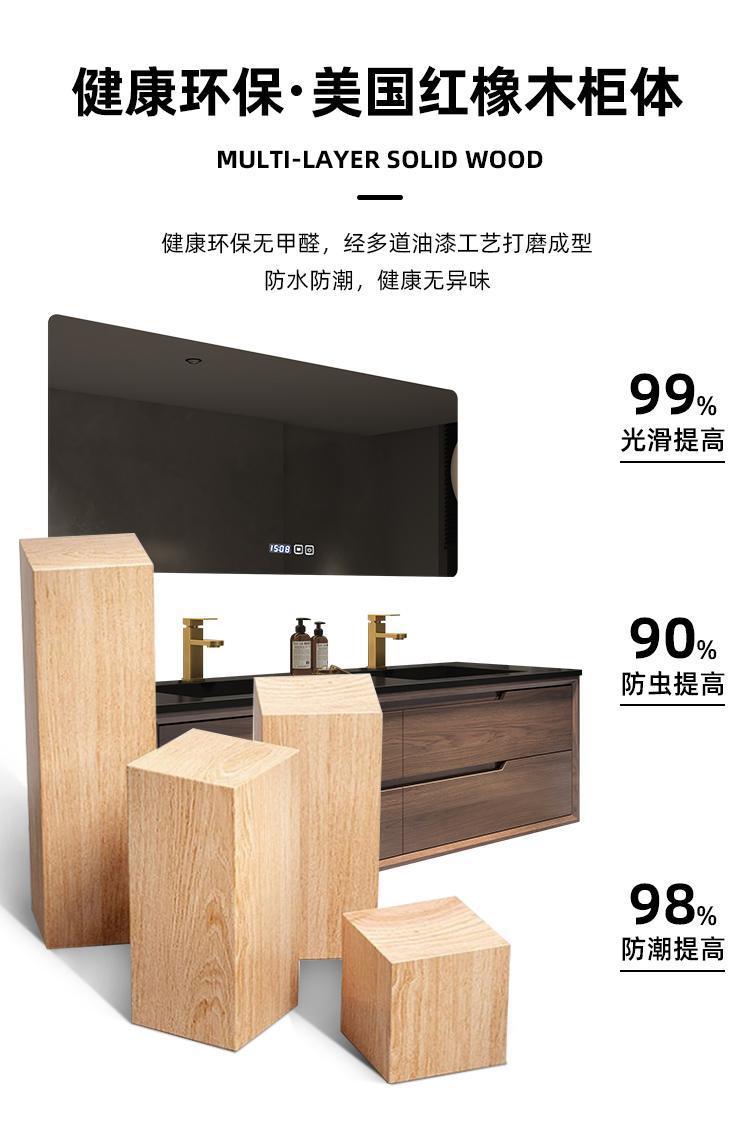 - Rock plate seamless ceramic basin smart square mirror -180CM American red oak cabinet