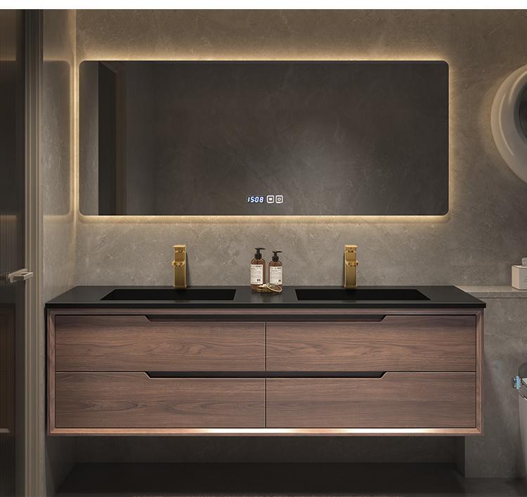 - Rock plate integrated basin intelligent mirror cabinet -160CM American red oak cabinet