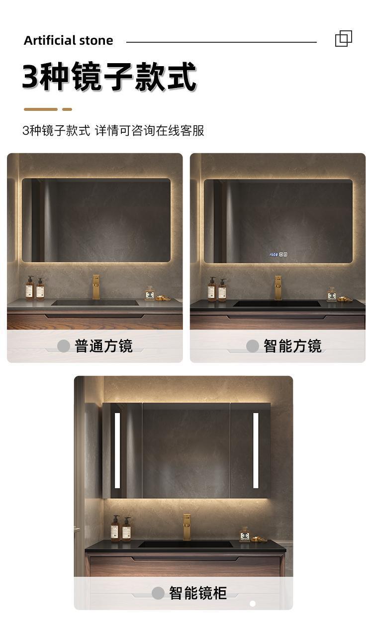 - Rock plate seamless ceramic basin smart square mirror -80CM American red oak cabinet
