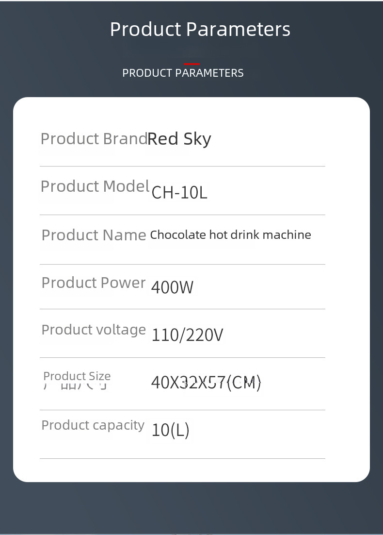 Red Sky 10 liter chocolate hot melt machine CH10L hot chocolate hot milk hot coffee machine chocolate hot drink machine