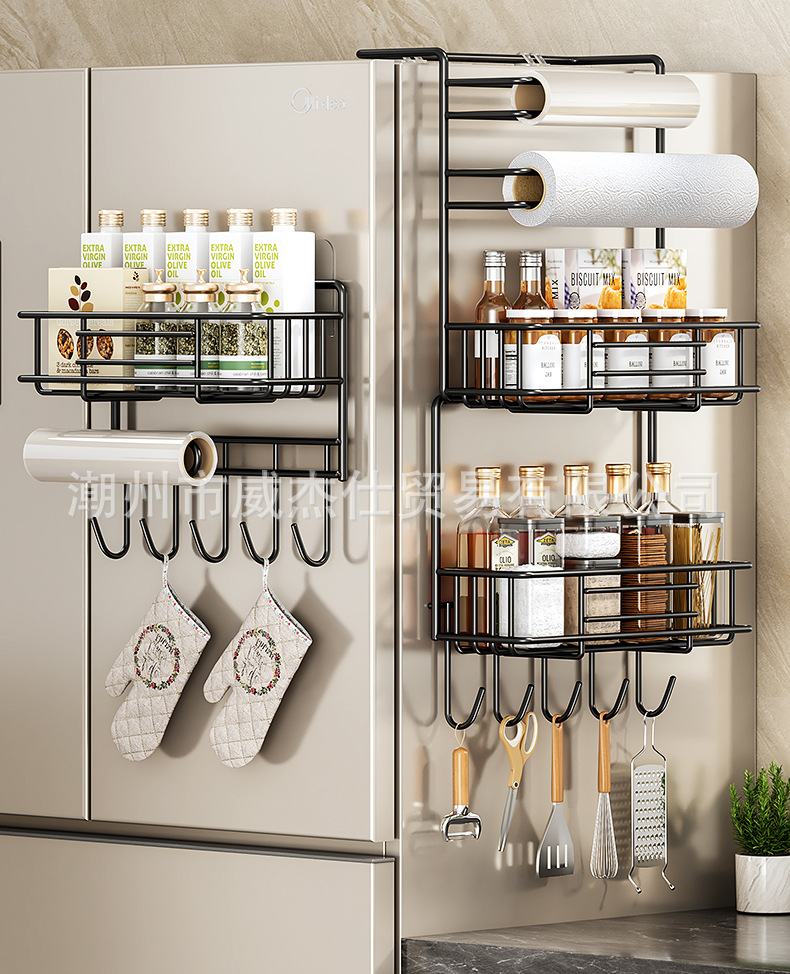 Refrigerator Storage Rack Side Storage Artifact Kitchen Supplies Household Daquan Side Wall Film Multi layer Hanging Shelf
