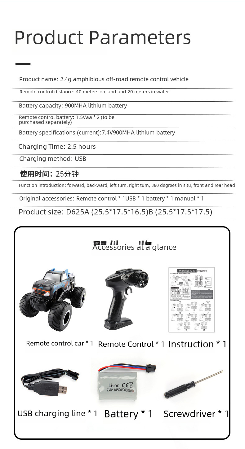 Remote control amphibious off road vehicle Children s charging electric four wheel drive stunt climbing car high speed double sided driving waterproof car