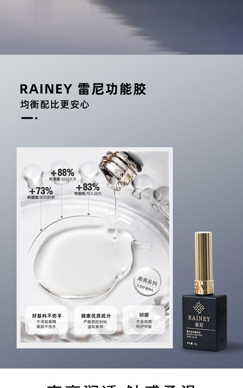 Reni original black bottle bottom adhesive sealing layer Nail Polish glue leveling reinforcement frosted tempered long lasting functional glue for manicure