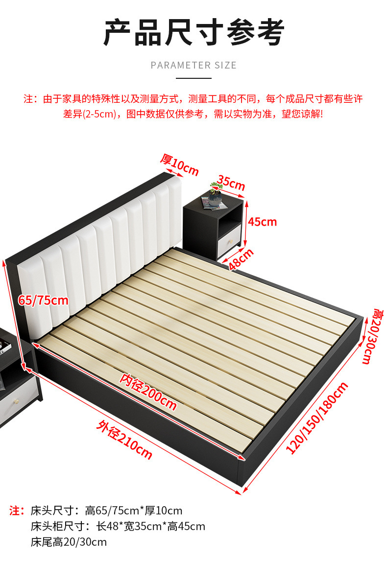 Rental Room Bed Solid Wooden Bed Double Bed 1.8x 2 m Plate Bed 1.5 m Household Single Bed 1.2 m Tatami