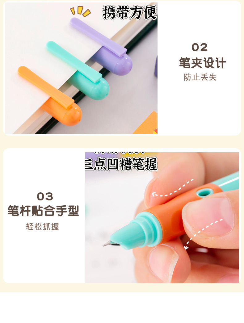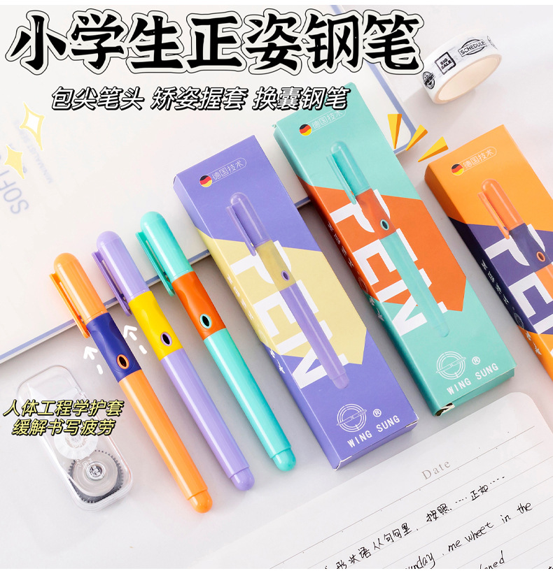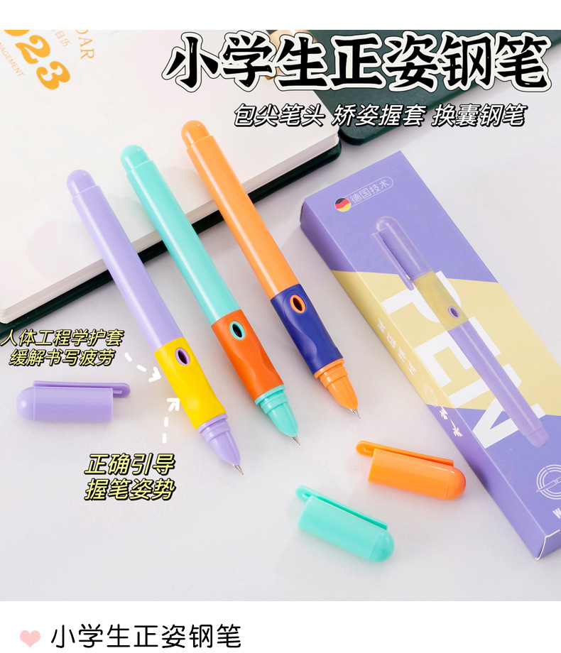 Replaceable ink sac positive posture pen learning office stationery primary school students to correct holding posture calligraphy pen wholesale