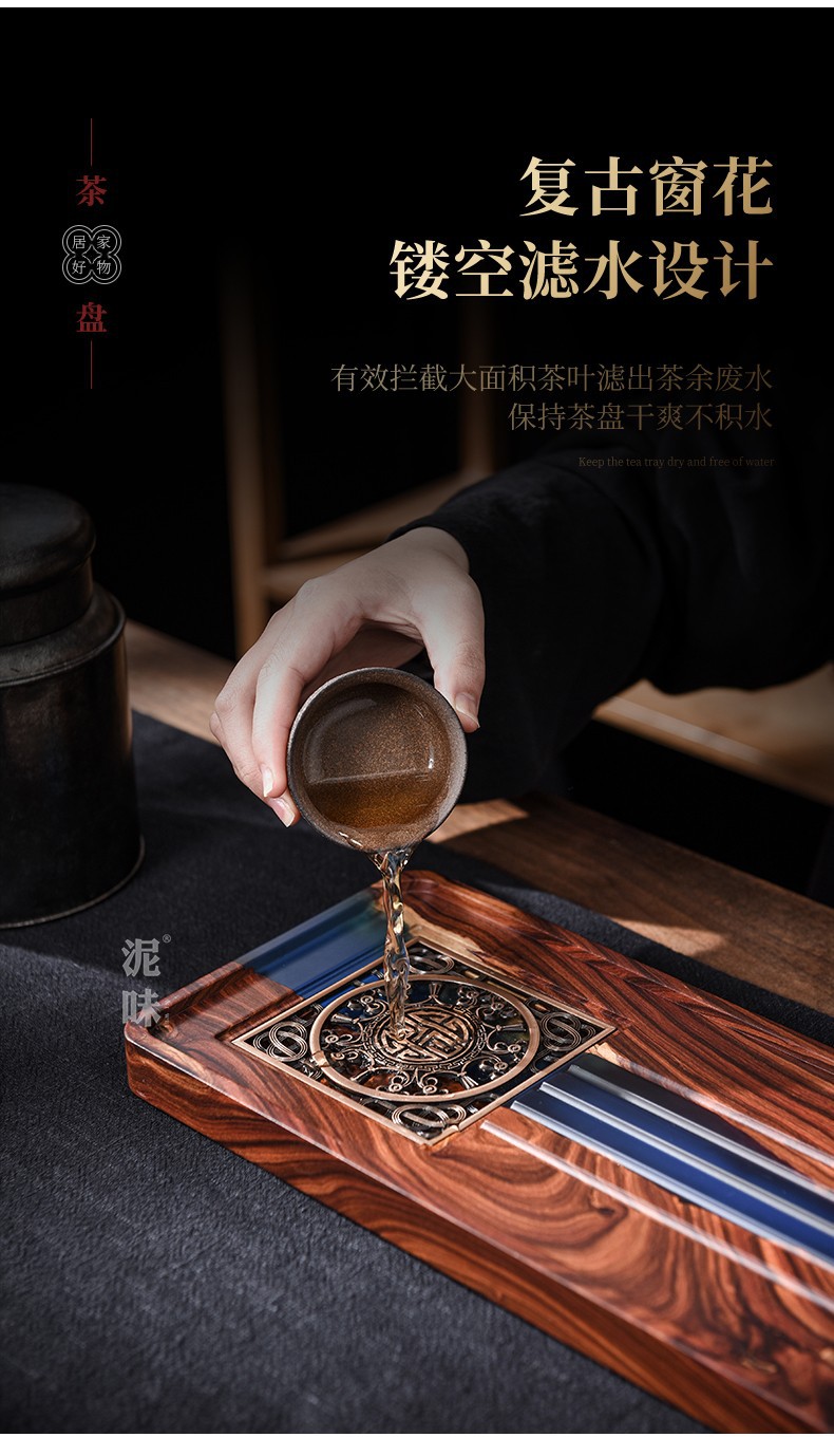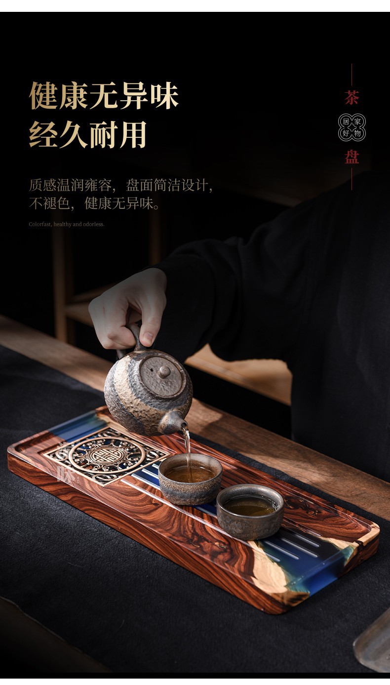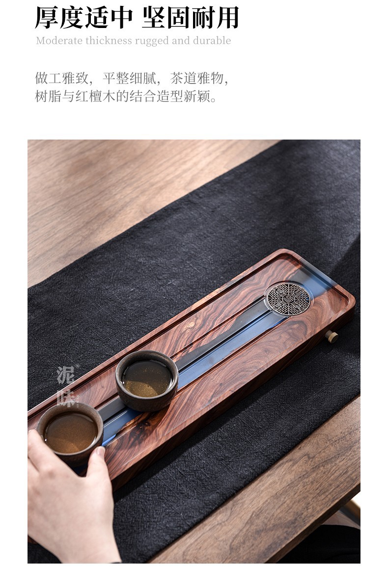 Resin small leaf red sandalwood solid wood tray tea tray rectangular large household drainage dry tea table tea set tray wooden tray