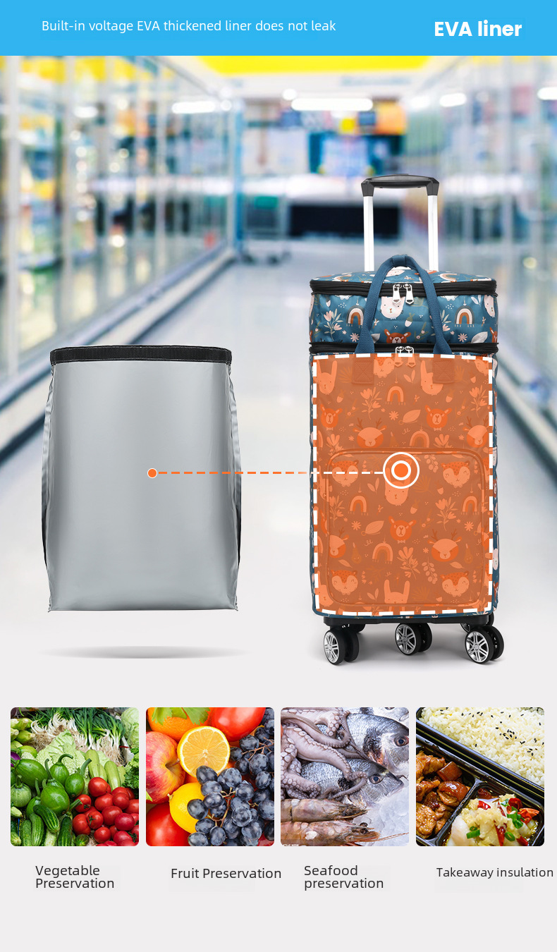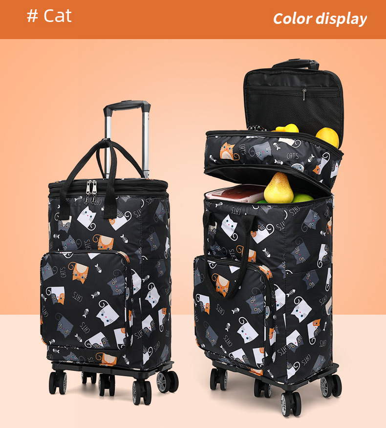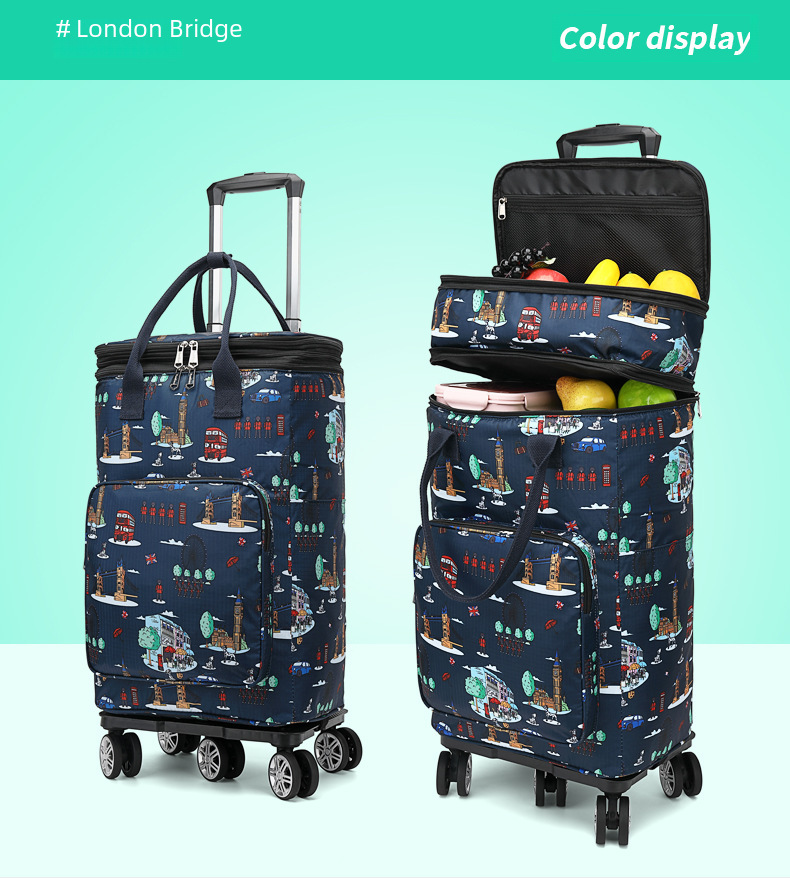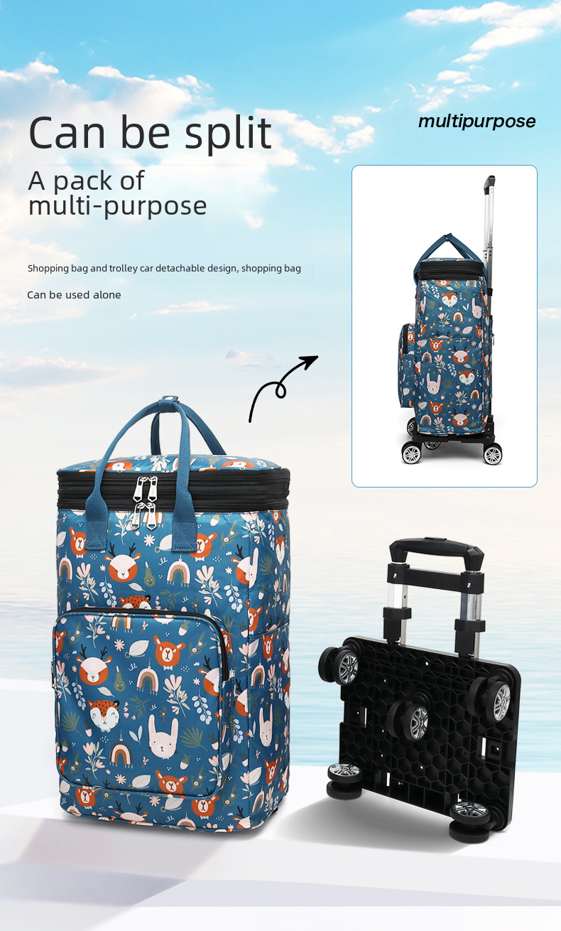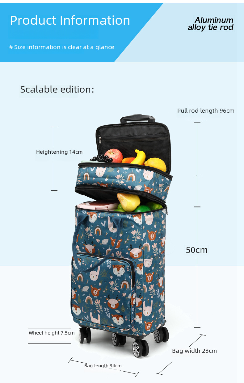 Retractable trolley bag supermarket shopping bag folding portable Portable Universal wheel shopping cart grocery shopping home pull cart camping
