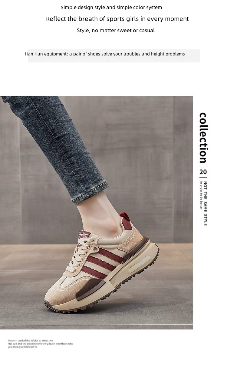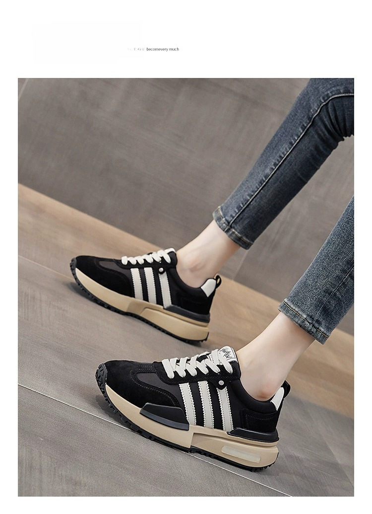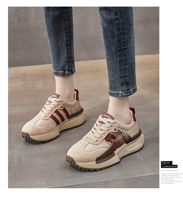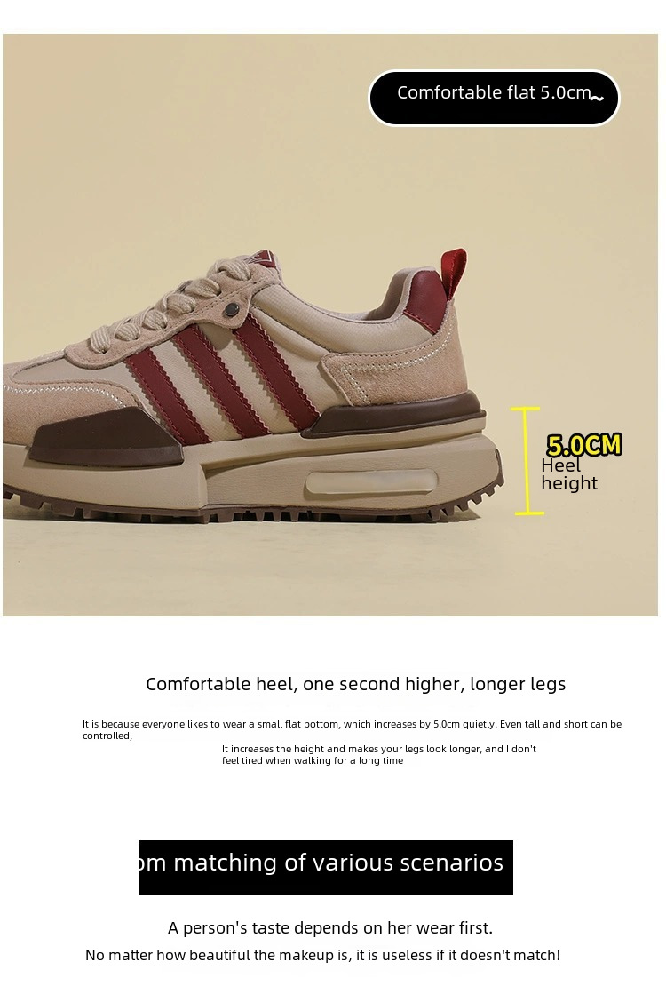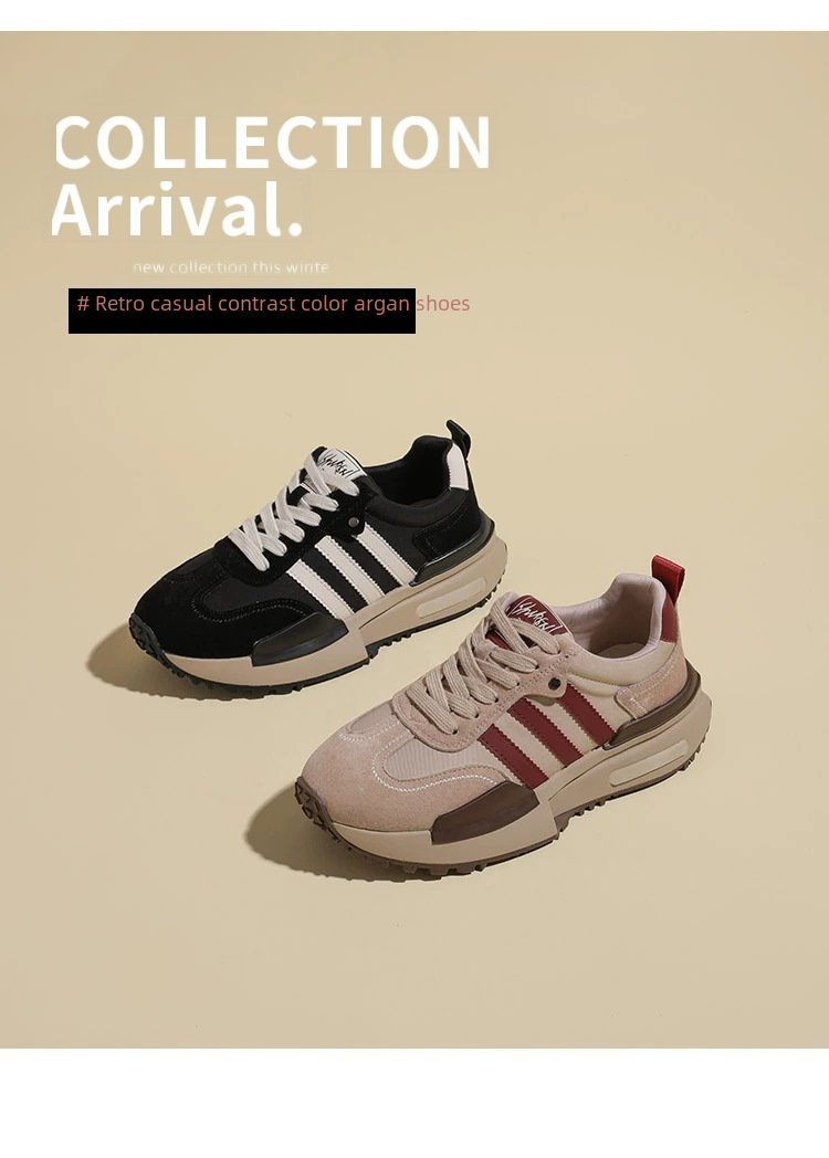 Retro German training shoes women s soft leather argan shoes 2024 Autumn New thick sole increased leisure sports clunky shoes