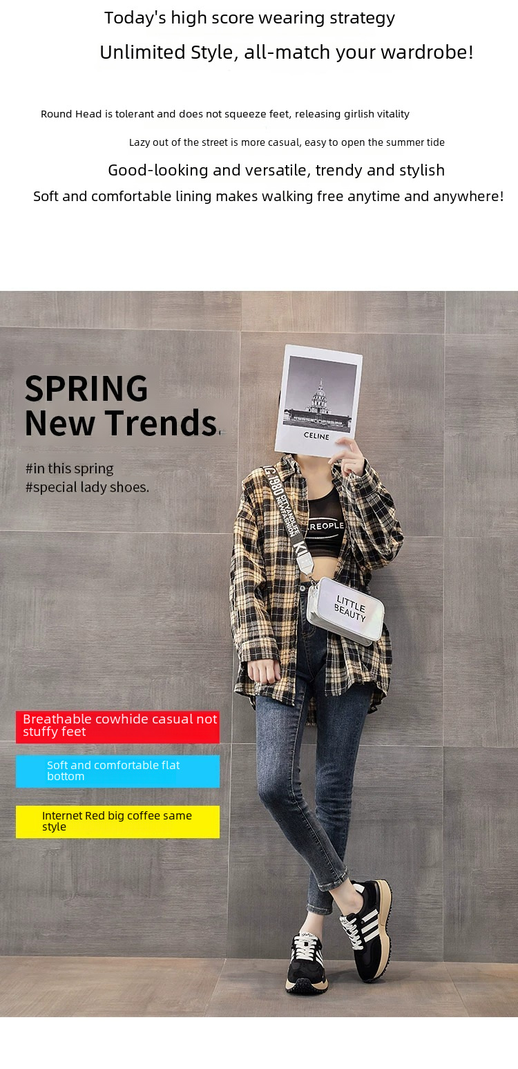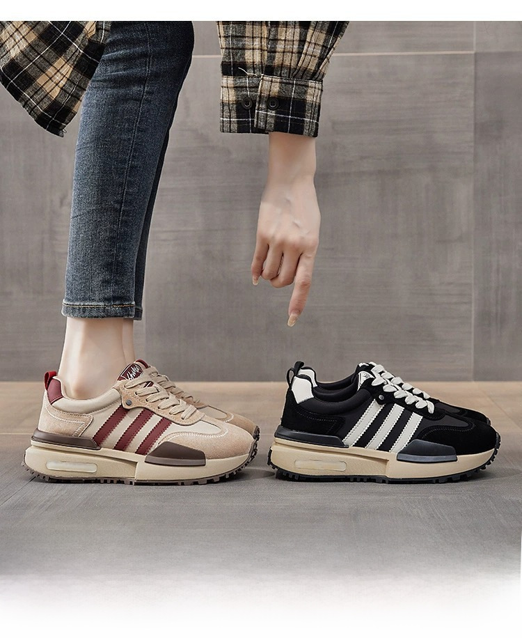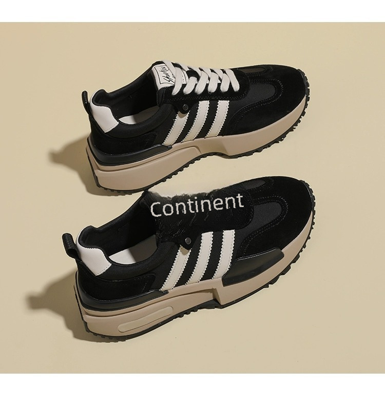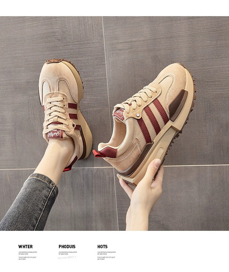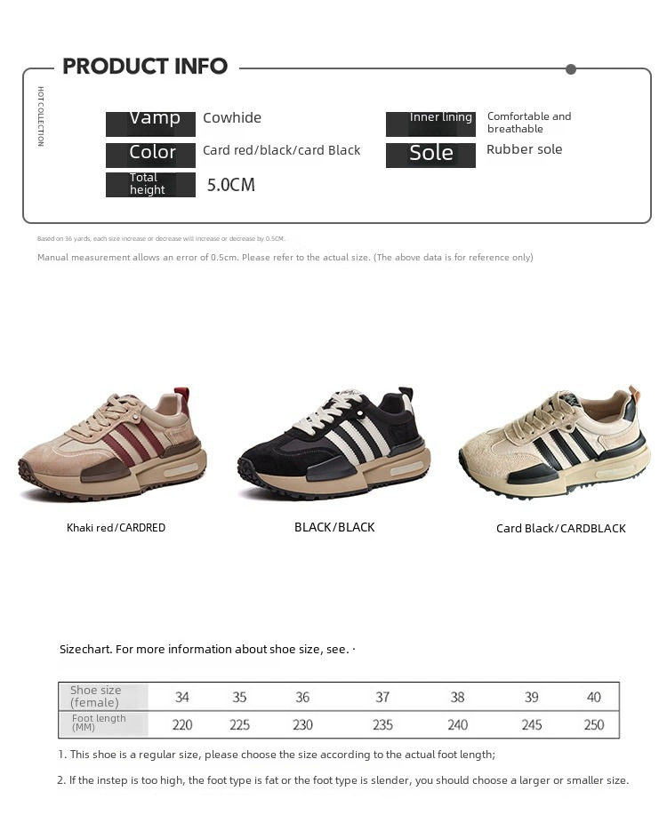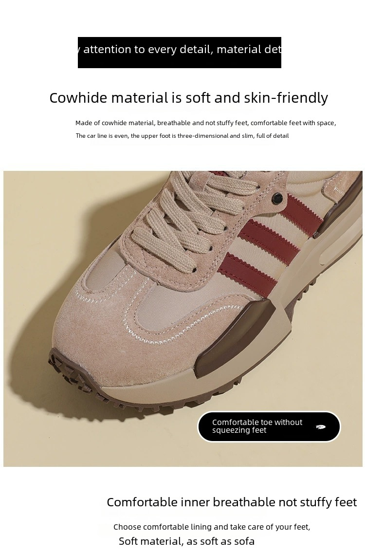 Retro German training shoes women s soft leather argan shoes 2024 Autumn New thick sole increased leisure sports clunky shoes
