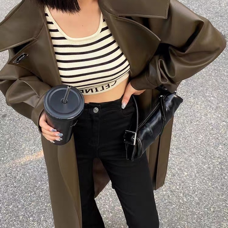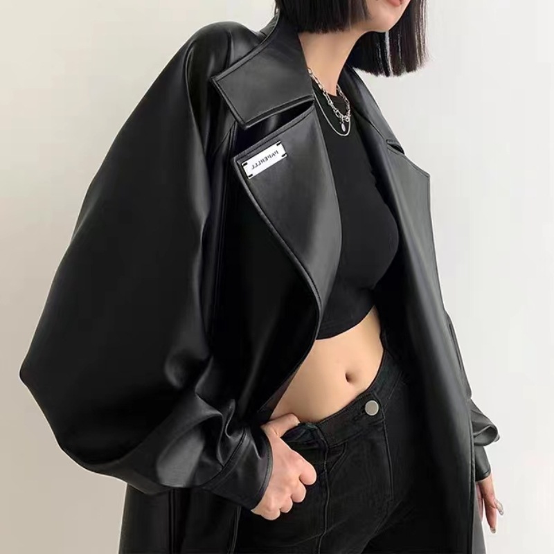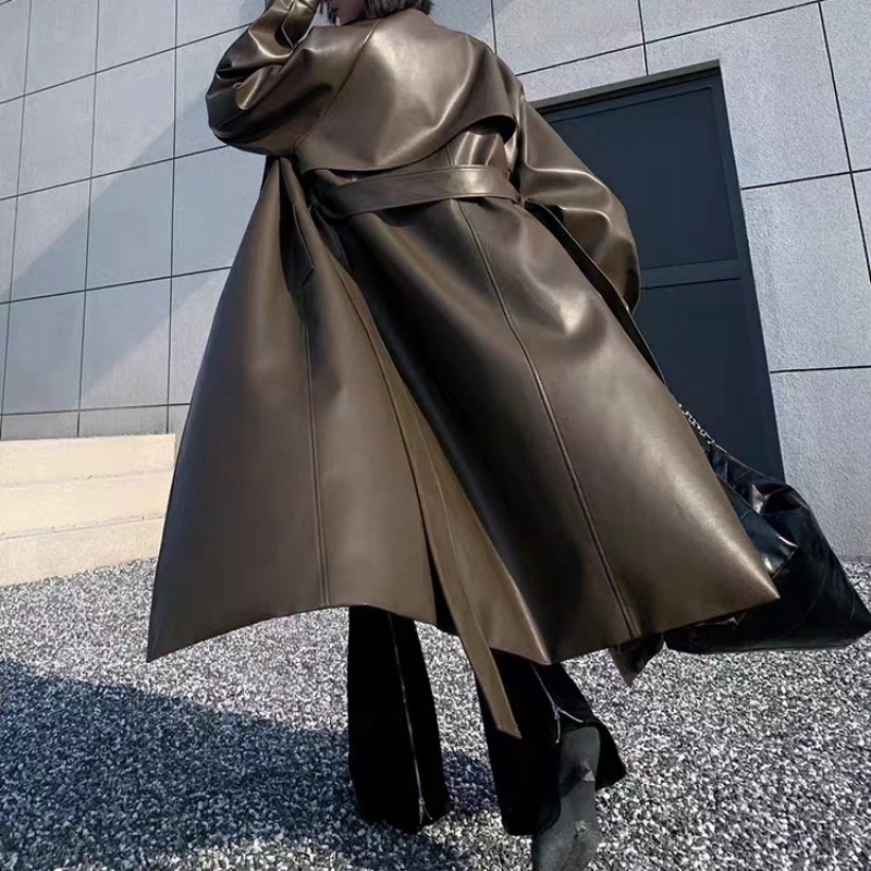 Retro Hong Kong style leather coat for women 2024 spring and autumn Korean style fashionable new coat long sleeve trench coat fashionable