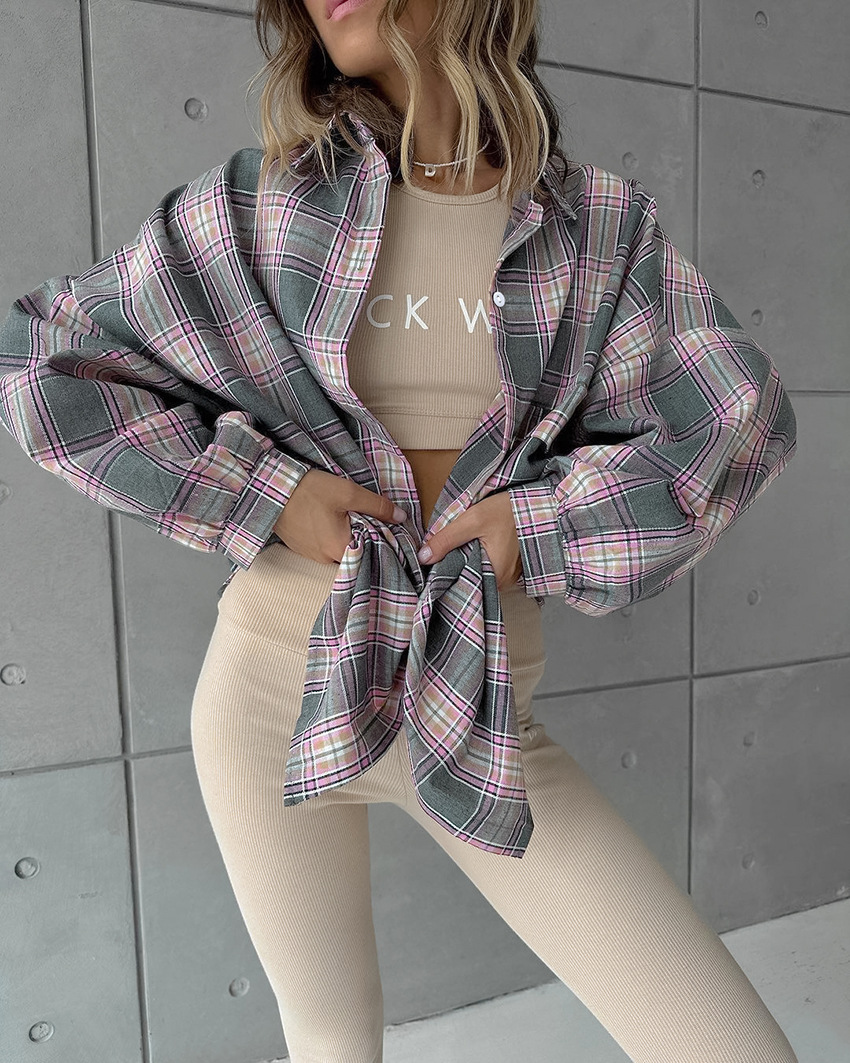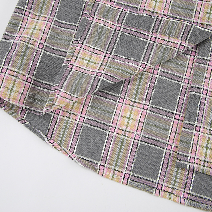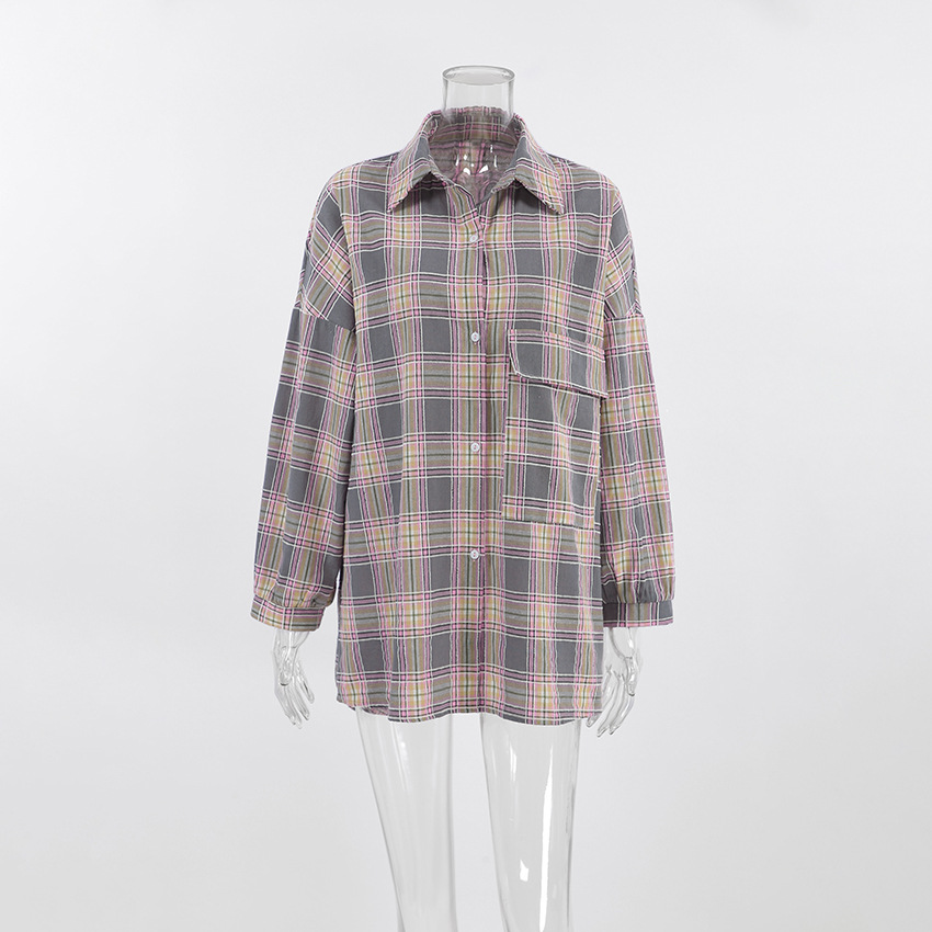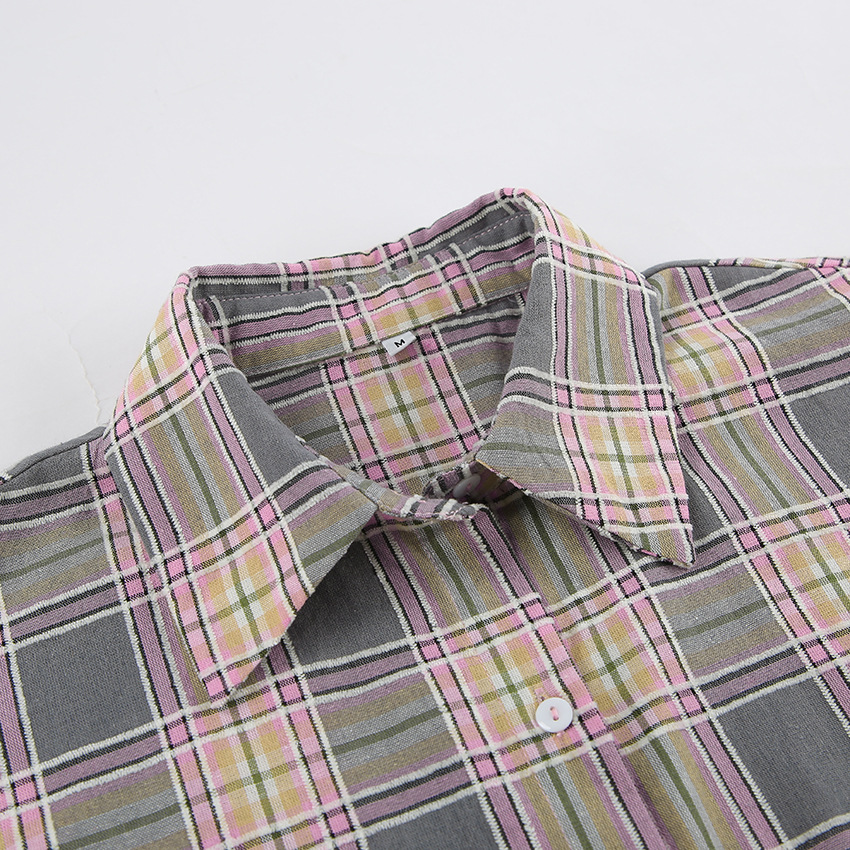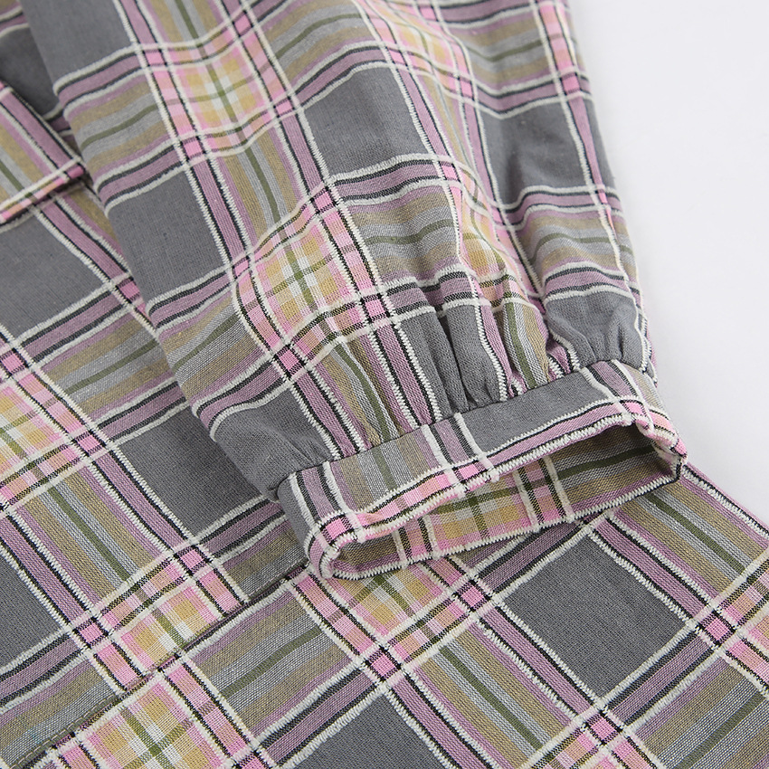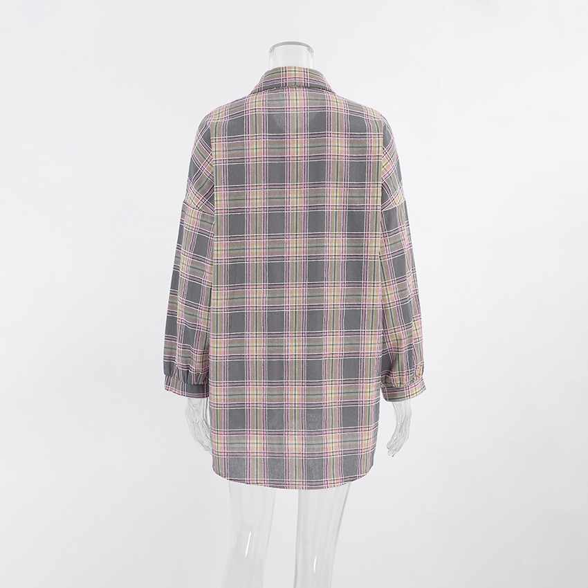 Retro loose cotton lapel all match plaid shirt 2024 European and American Spring Fashion cross border commuter cardigan for women
