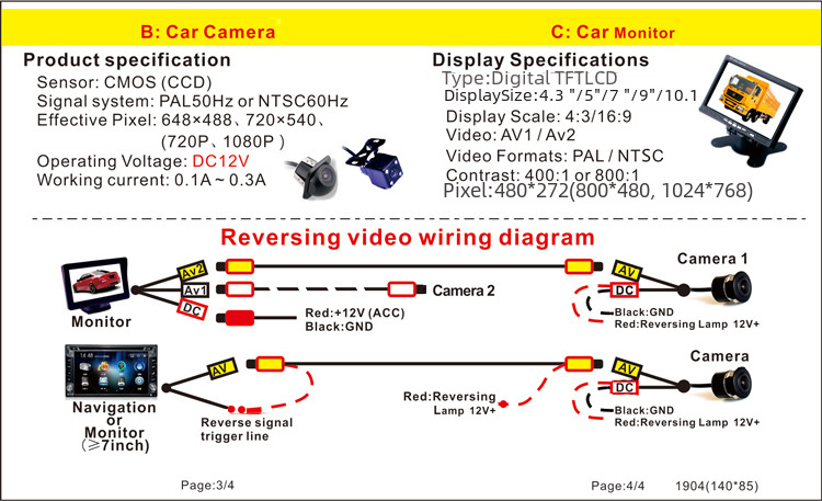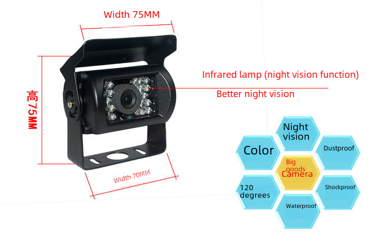 Reversing camera 12 infrared bus camera 24V car passenger car HD night vision rear view camera