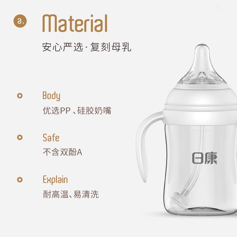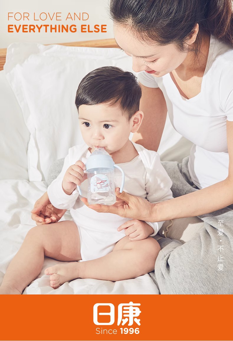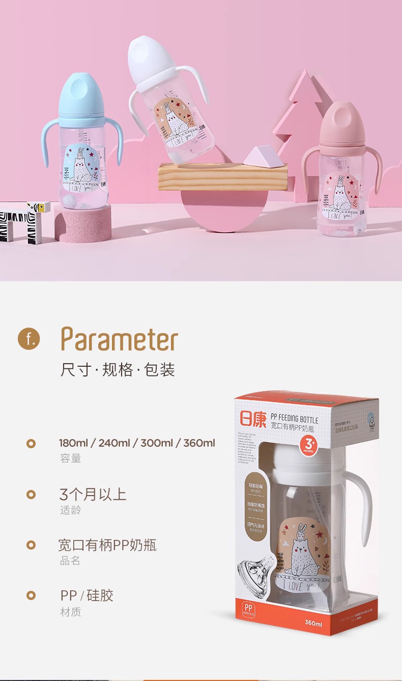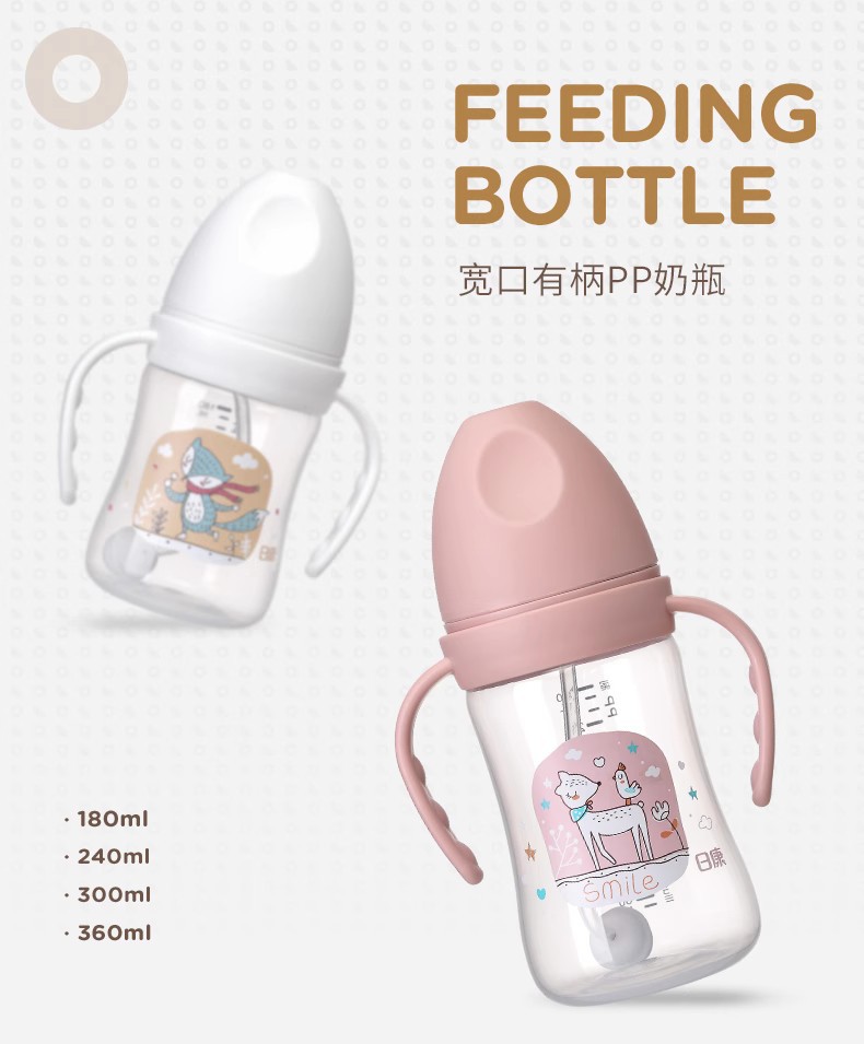 Rikang wide mouth silicone nipple PP feeding bottle baby newborn baby straw handle feeding bottle