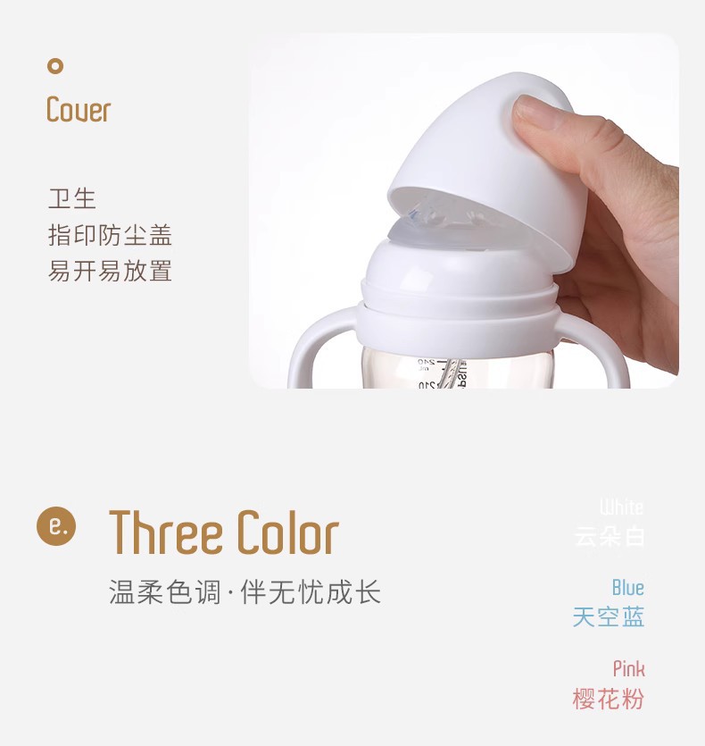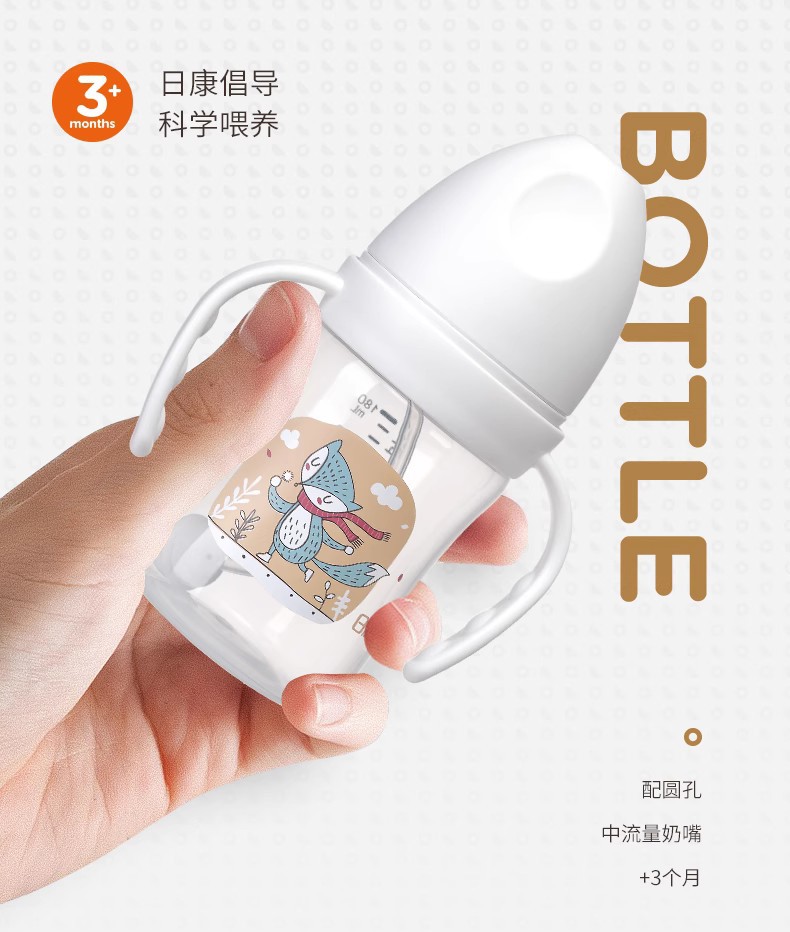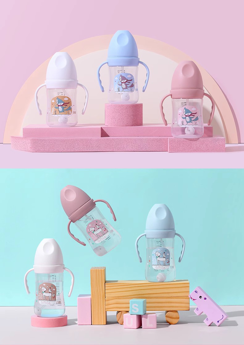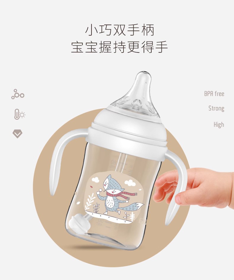 Rikang wide mouth silicone nipple PP feeding bottle baby newborn baby straw handle feeding bottle