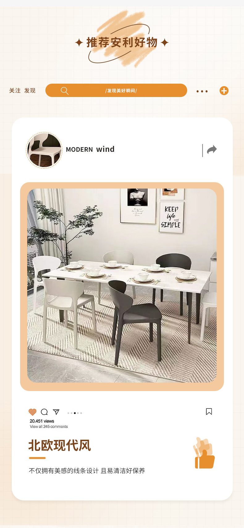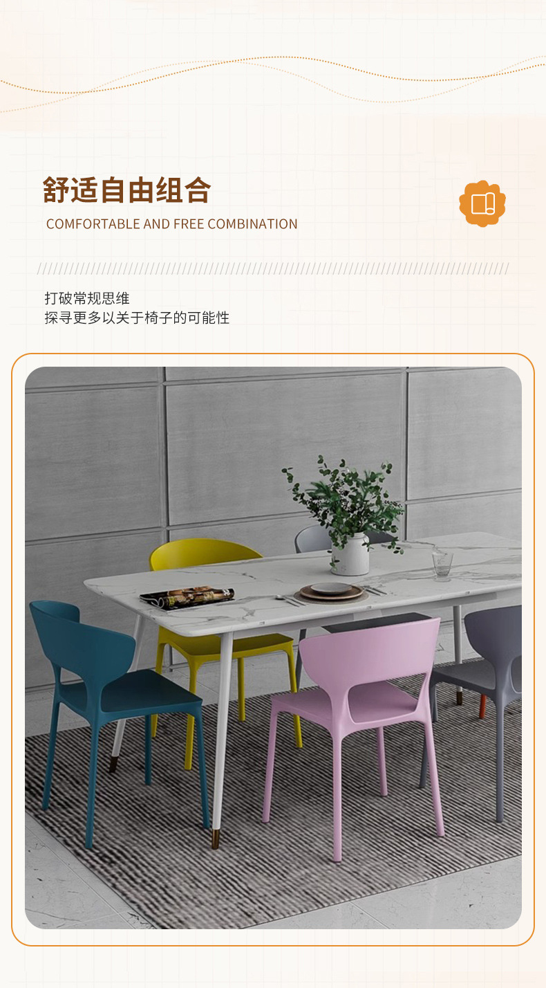 Rock Board Dining Table and Chair Modern Simple Desk and Chair Creative Stackable Plastic Chair Household Dining Room Backrest Dining Chair