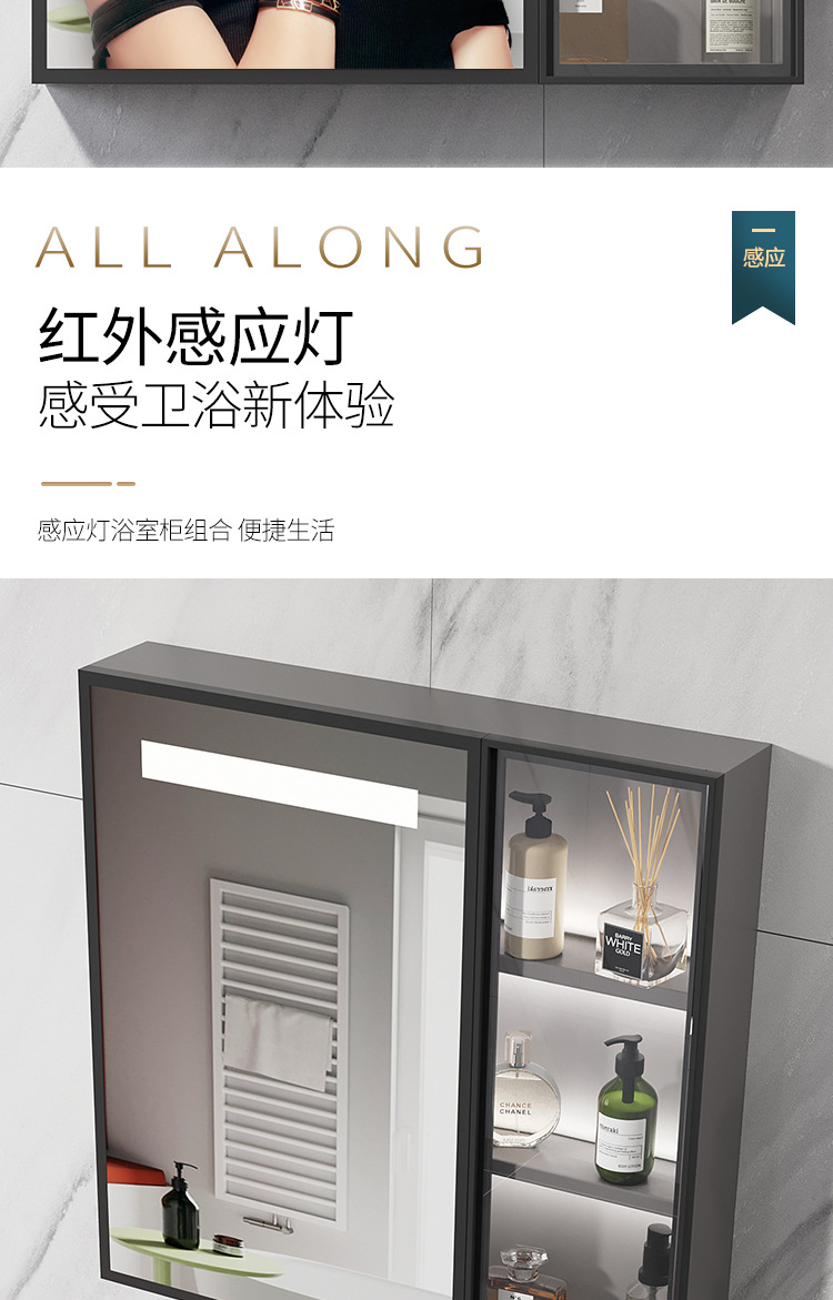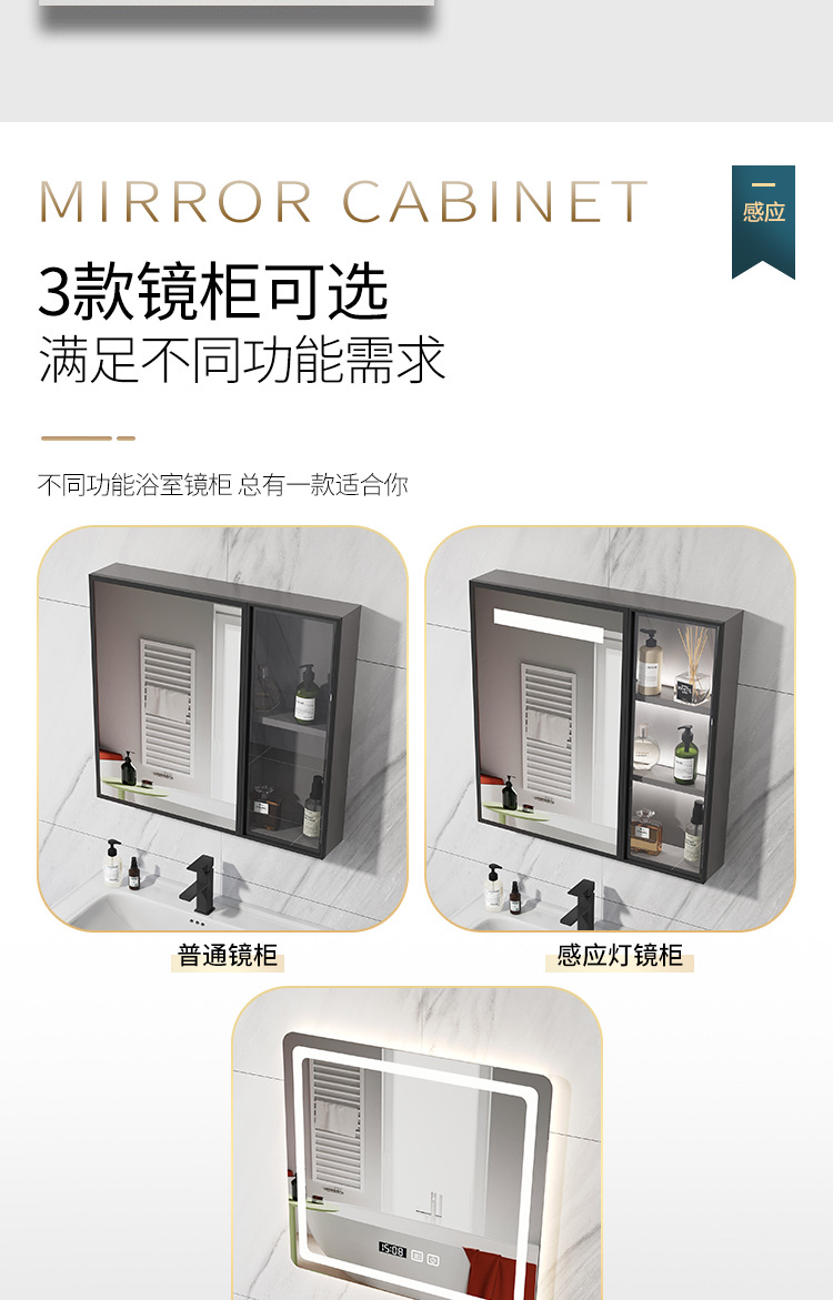 - 90CM limestone board + intelligent mirror cabinet (induction)