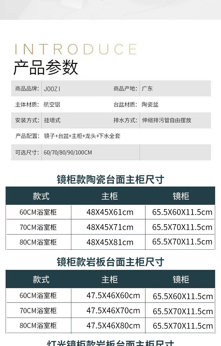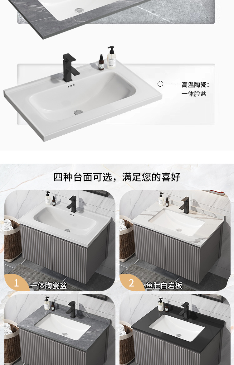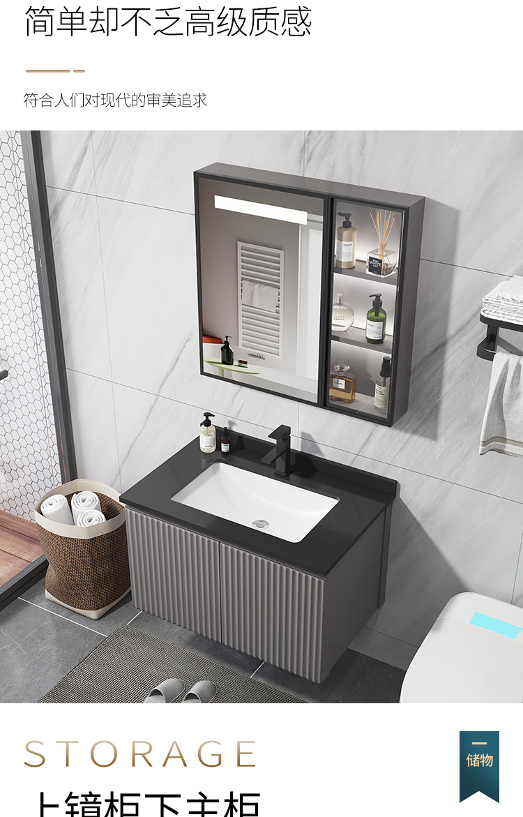 - 70CM rock plate basin + fully sealed mirror cabinet