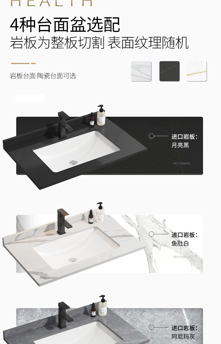 - 80CM rock plate basin + fully sealed mirror cabinet