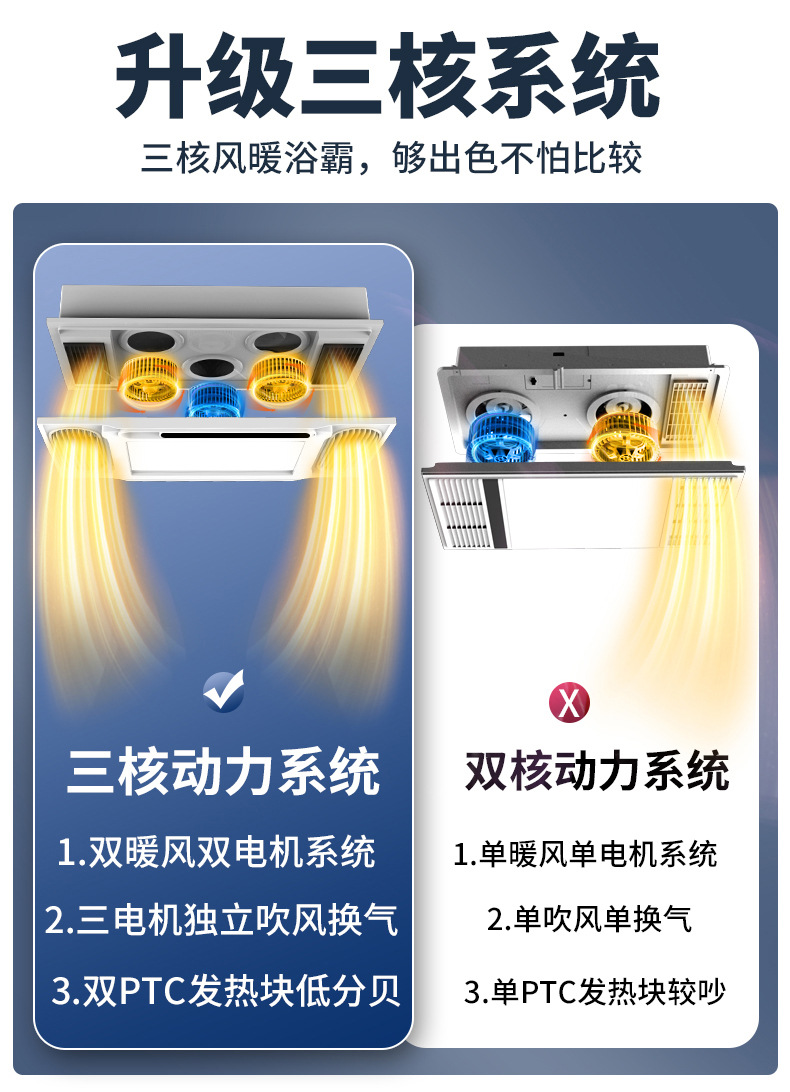 Rongshida wind heating bath heater exhaust fan all in one toilet integrated ceiling lamp bathroom heater three motors