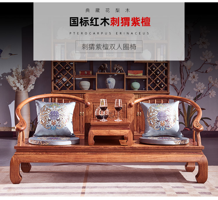 Rosewood Rosewood hedgehog Rosewood new Chinese leisure round chair solid wood furniture double sand couple chair