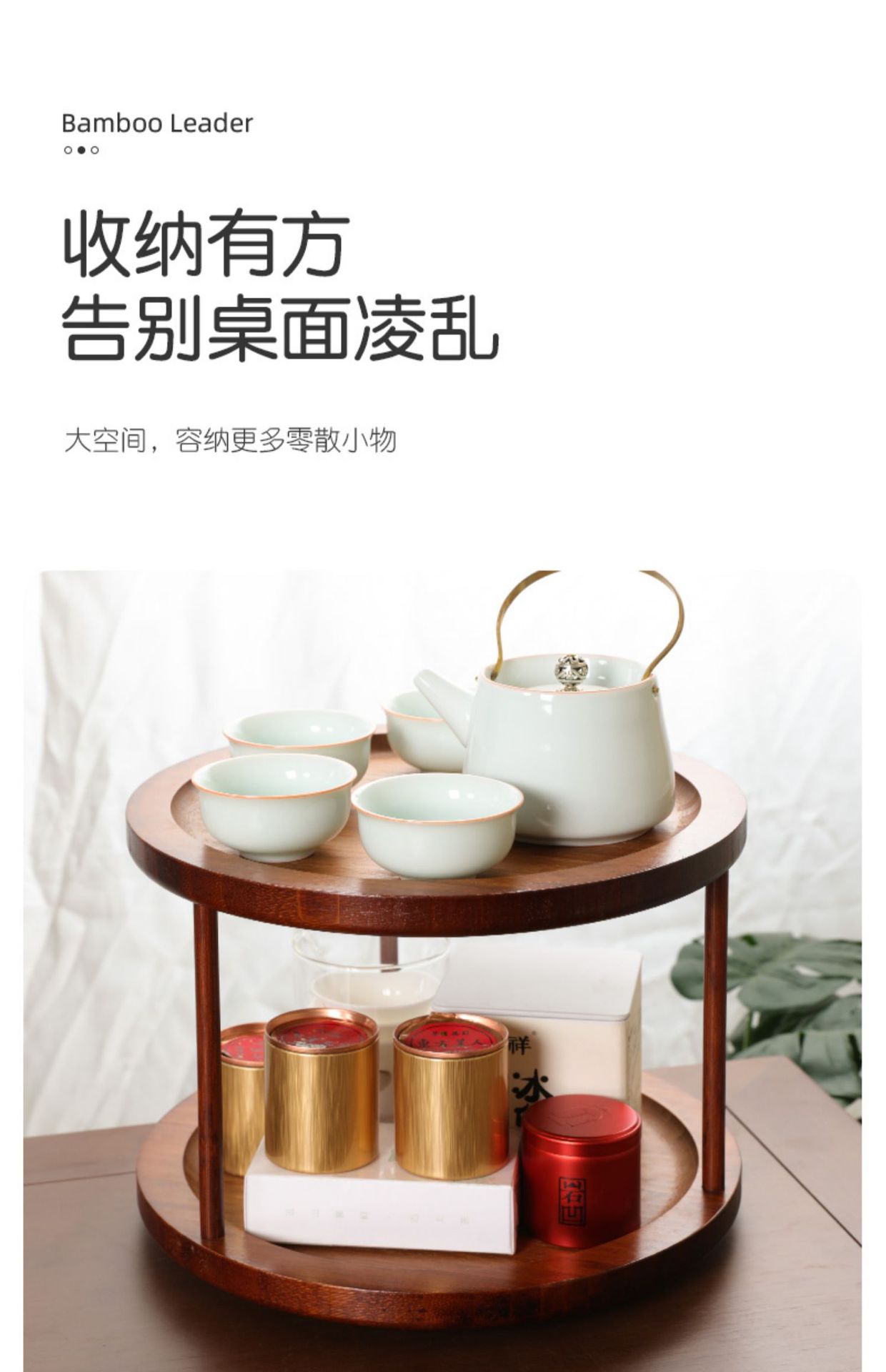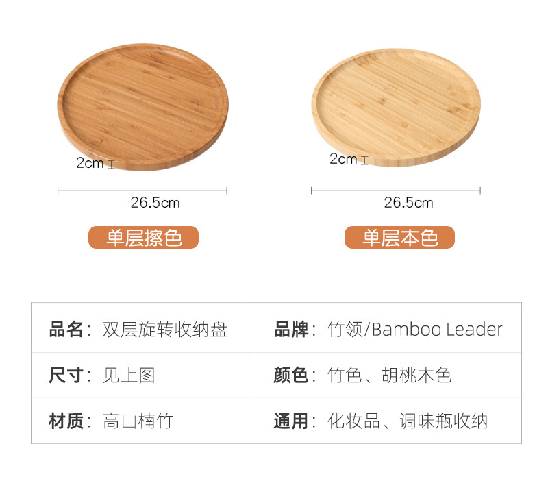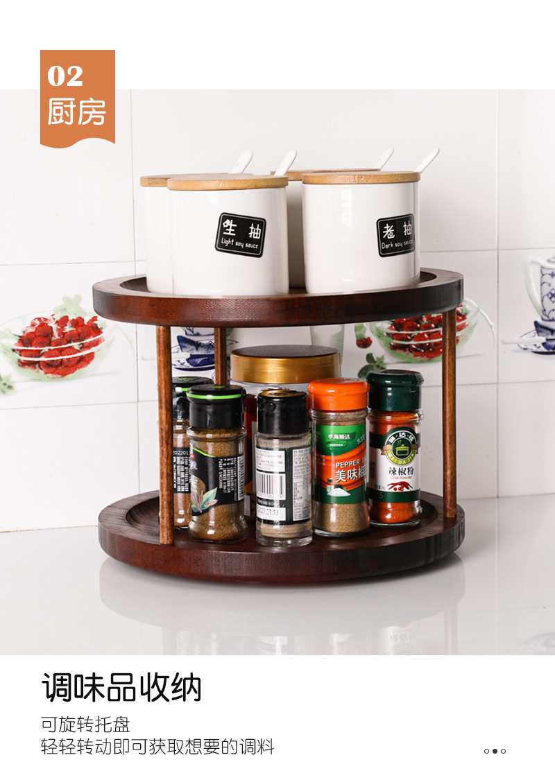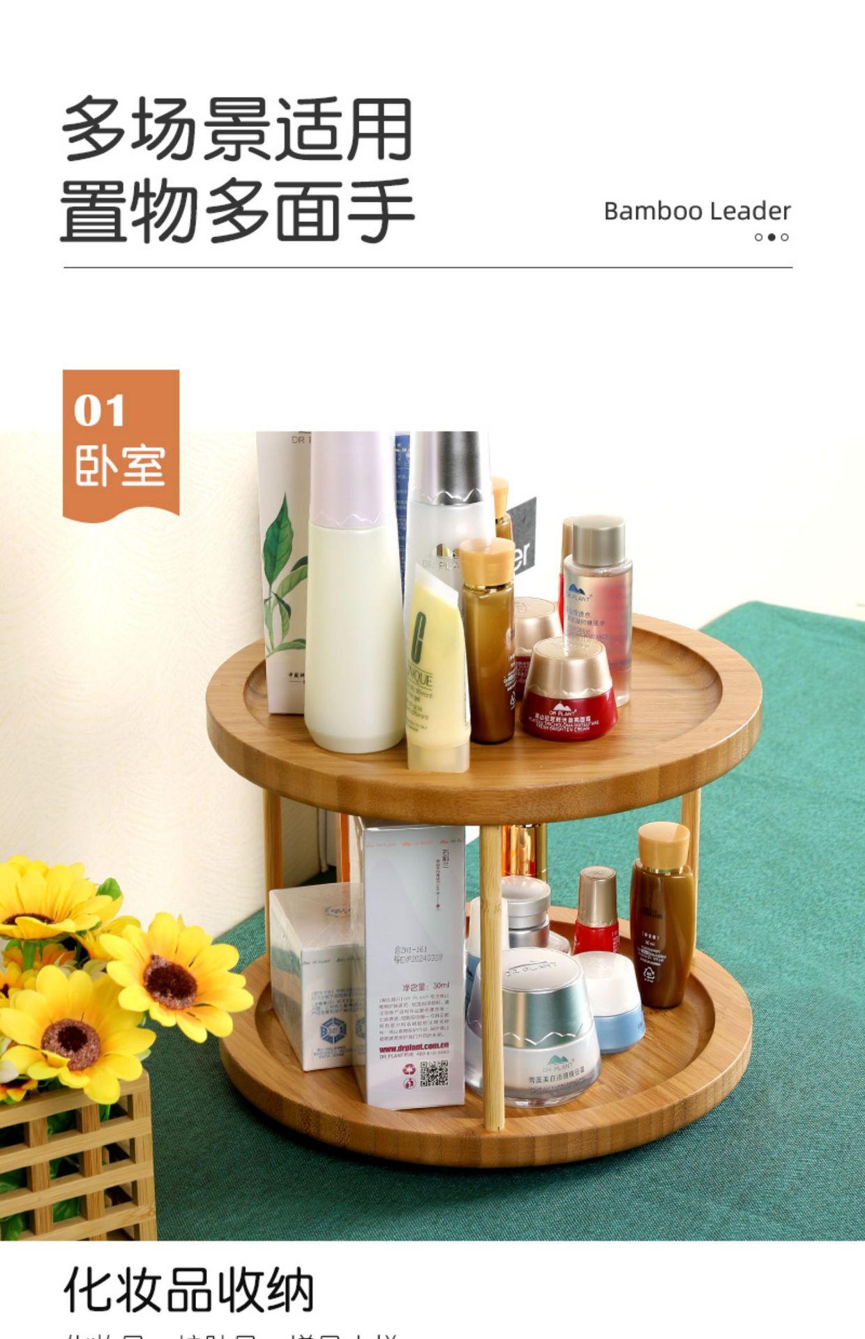 Rotatable Multi-functional Double-layer Storage Rack Full Bamboo Storage Rack Kitchen Seasoning Cosmetic Storage Tray Round Turntable