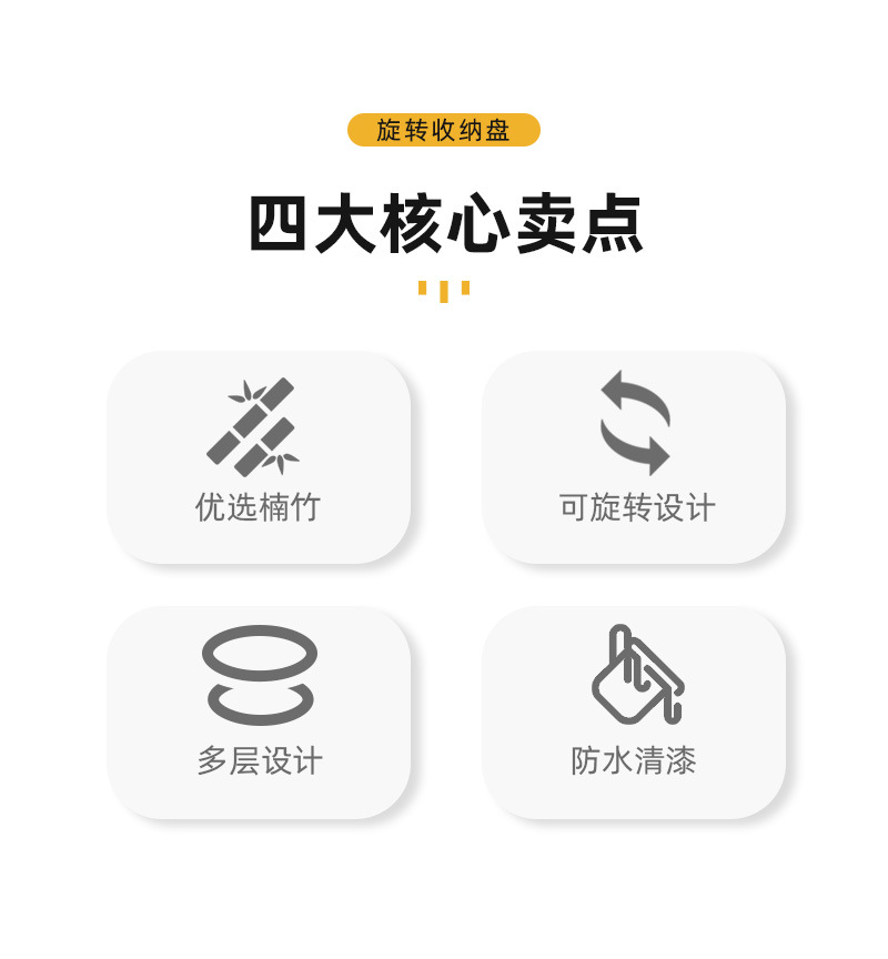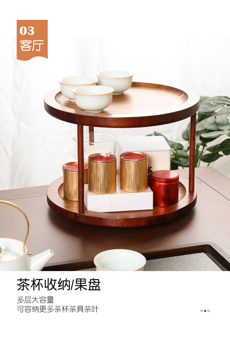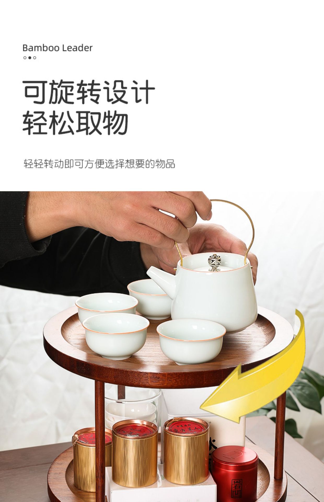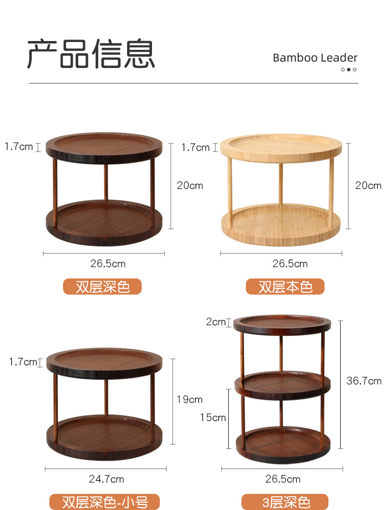 Rotatable Multi-functional Double-layer Storage Rack Full Bamboo Storage Rack Kitchen Seasoning Cosmetic Storage Tray Round Turntable