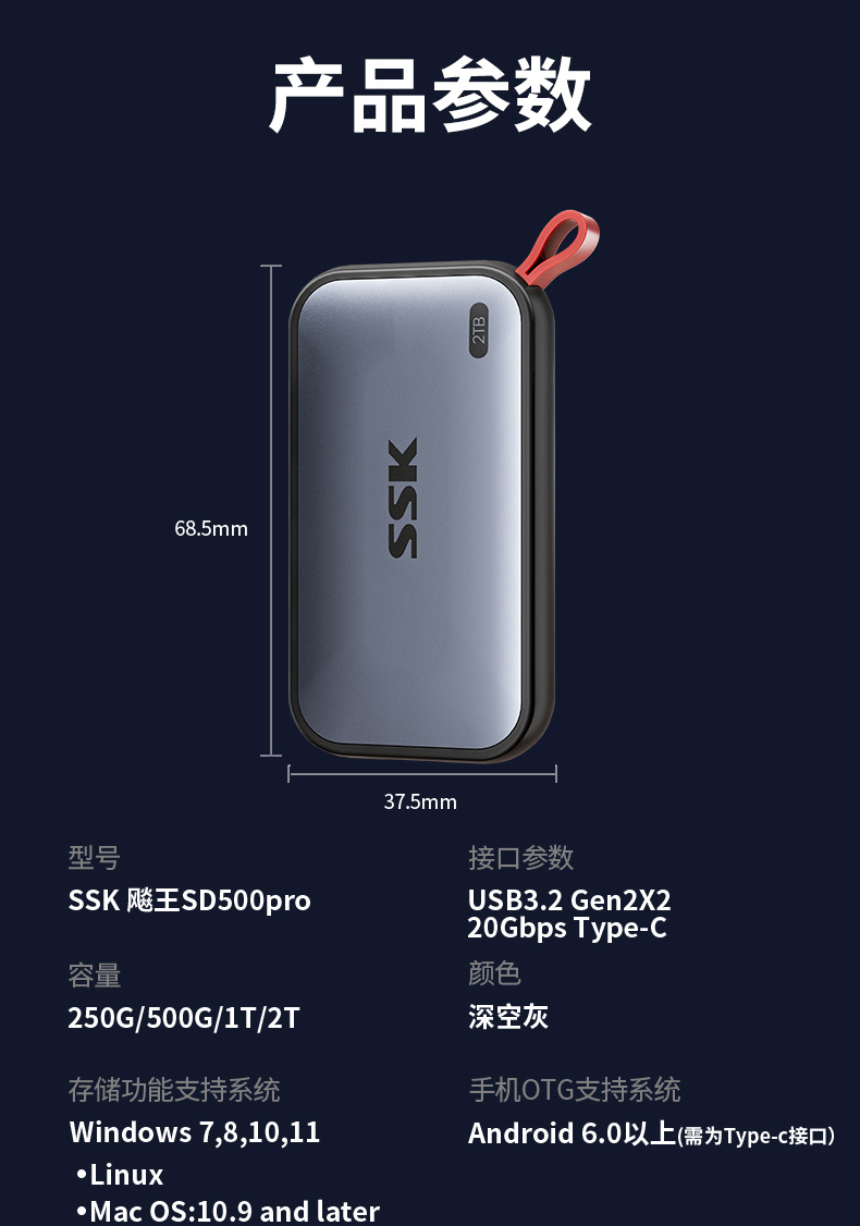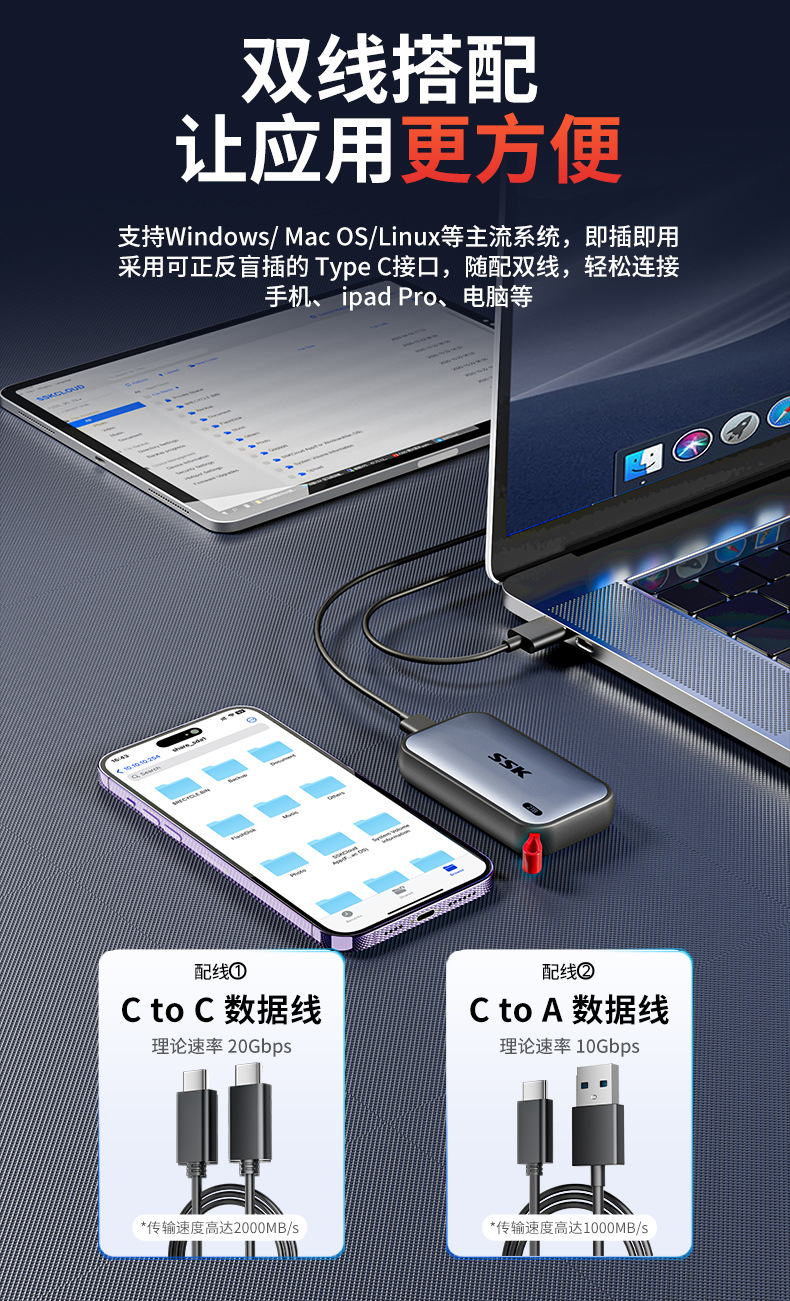 SSK SSK mobile ssd 1T Portable ssd ssd C port external mobile phone computer universal SD500