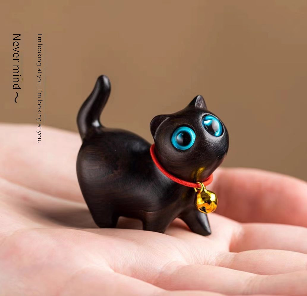 Sandalwood kitten playing with Mini Kitten cute healing simple gift Wen Chuang handmade ornaments desktop