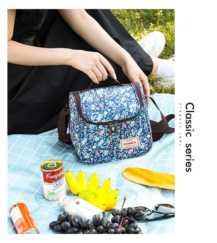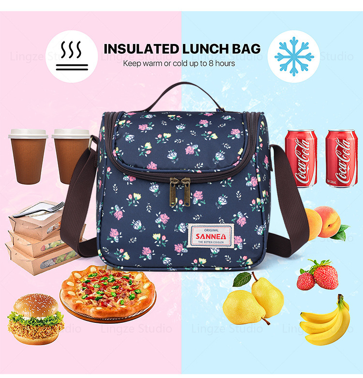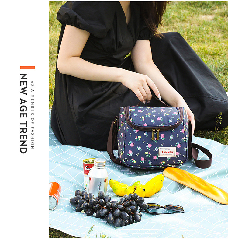 Sanneng portable printed lunch box bag office workers lunch insulation bag cold lunch bag outdoor picnic ice bag in stock