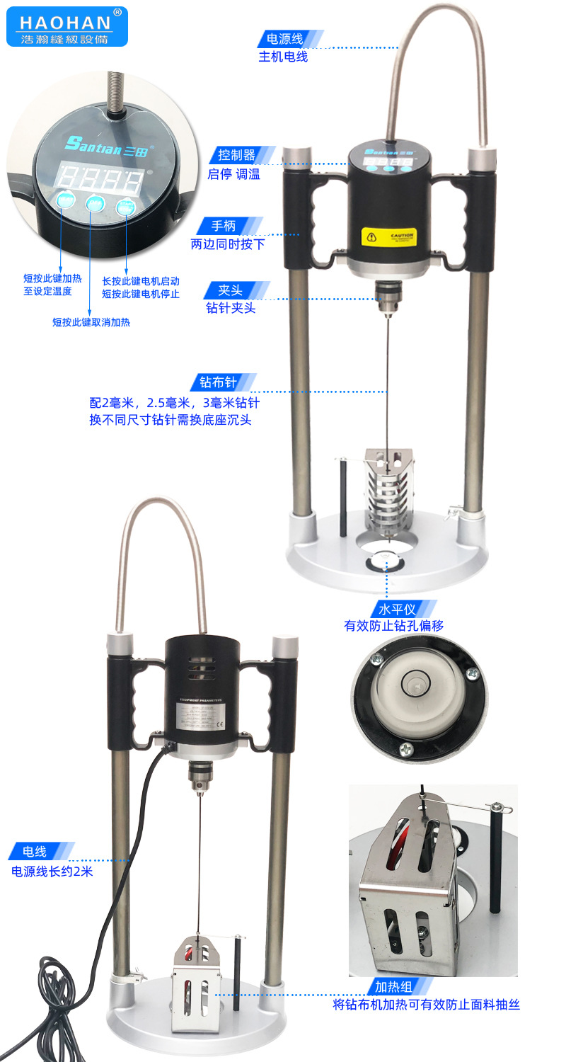 Santian constant temperature drilling machine electric heating drilling machine clothing fabric point horizontal electric drill cutting machine cutting positioning drill