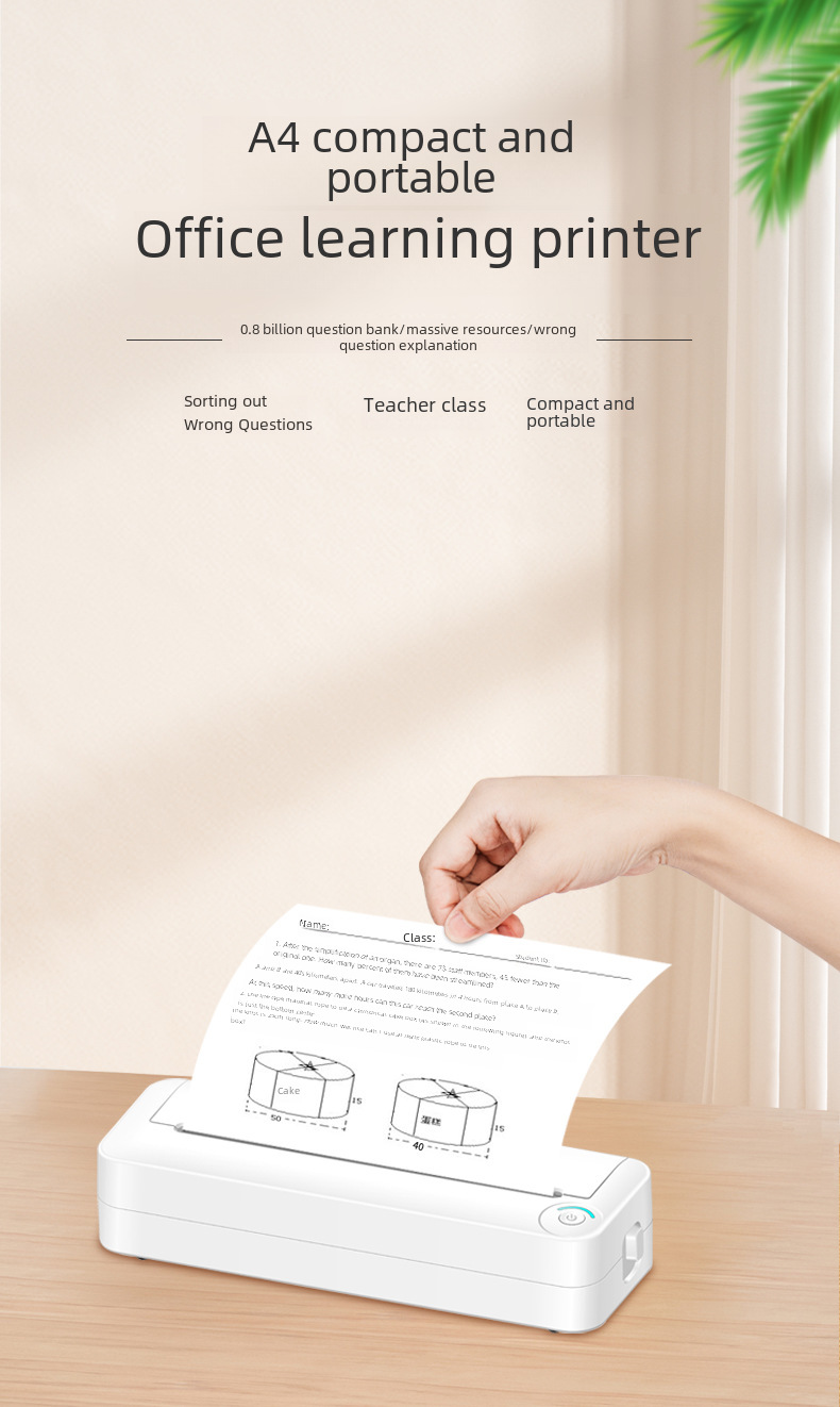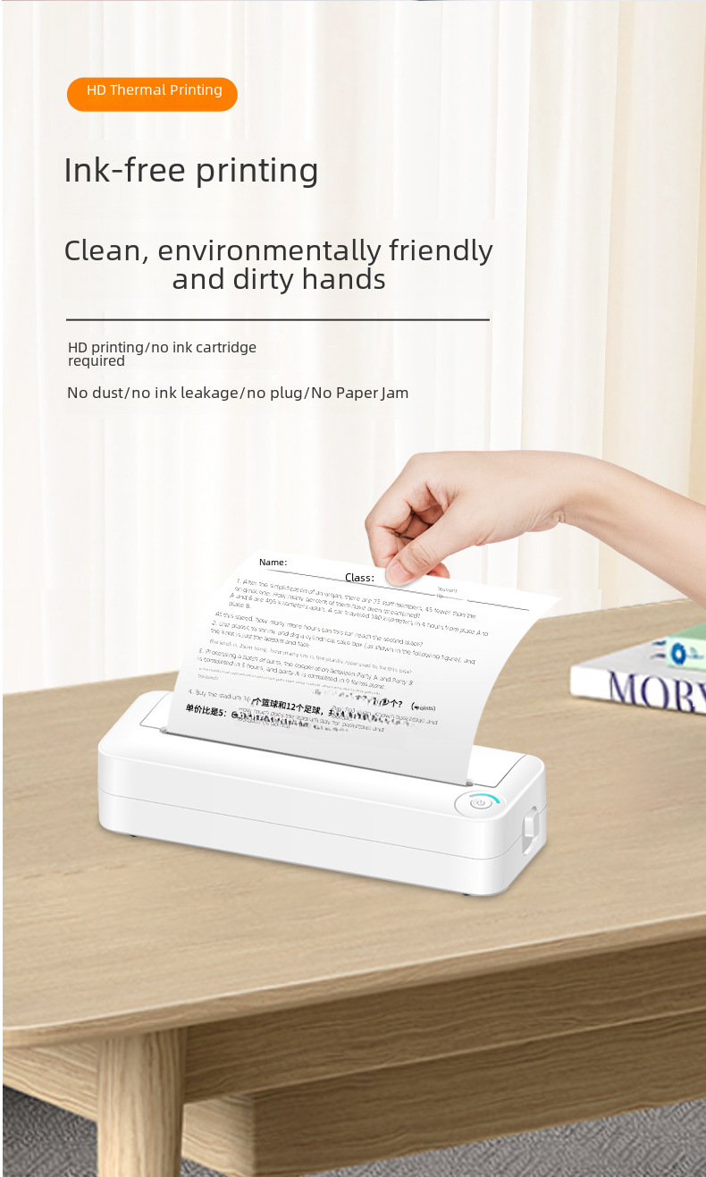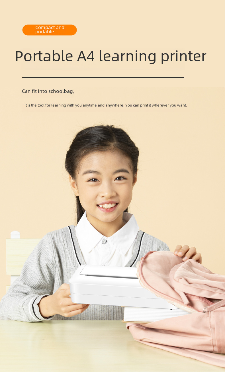 Schoolbag Lang household ink free wrong document thermal printer household small mini student A4 thermal printer