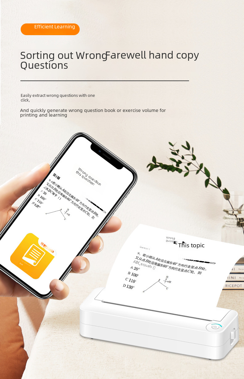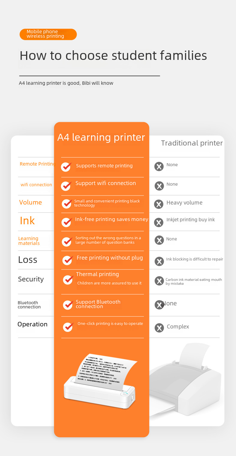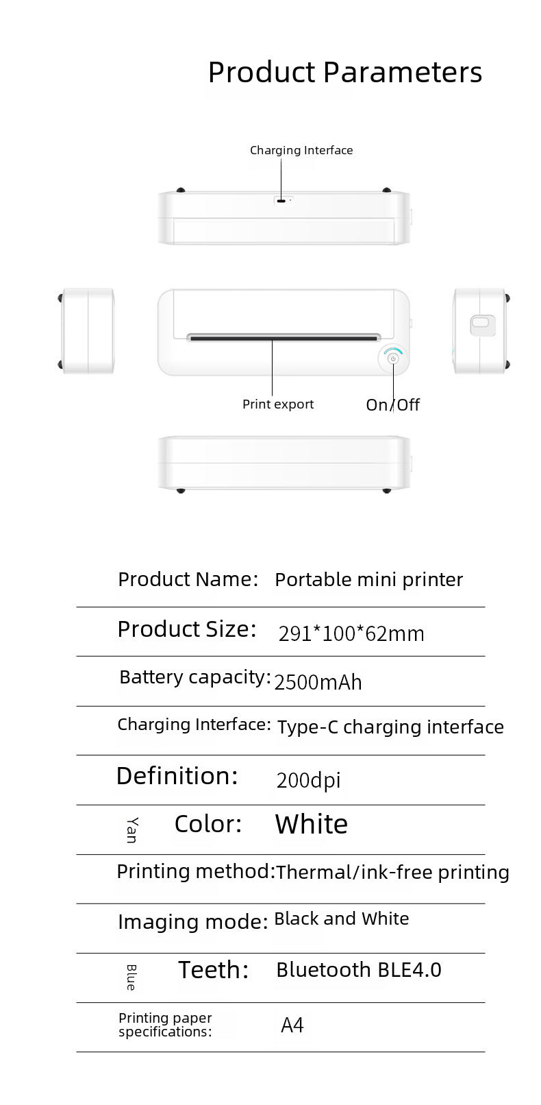 Schoolbag Lang household ink free wrong document thermal printer household small mini student A4 thermal printer