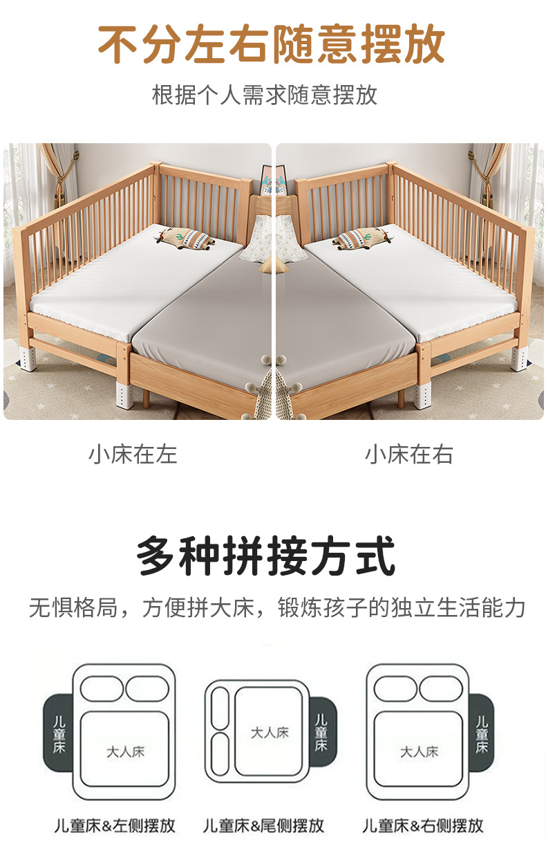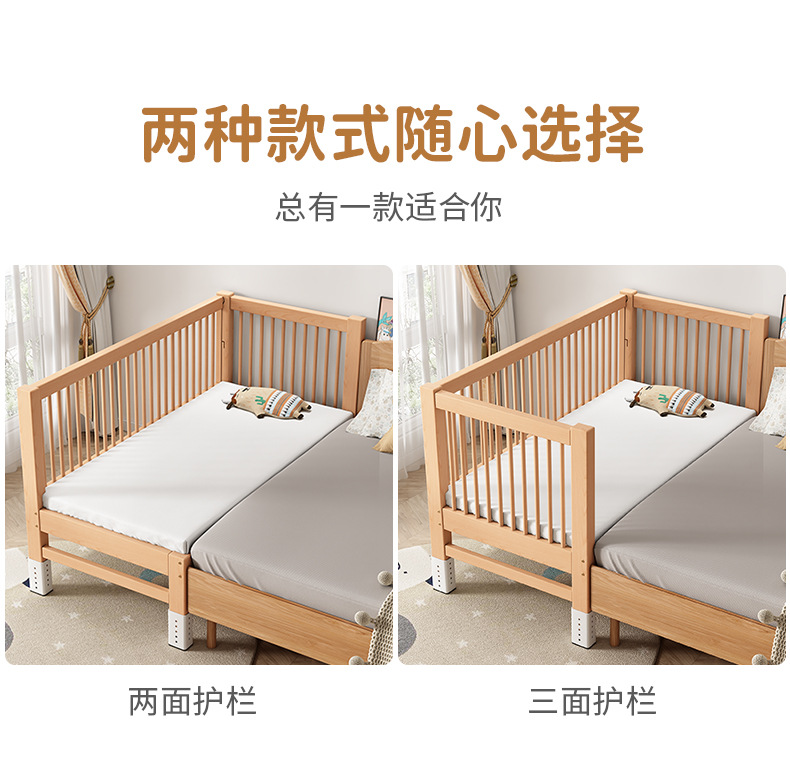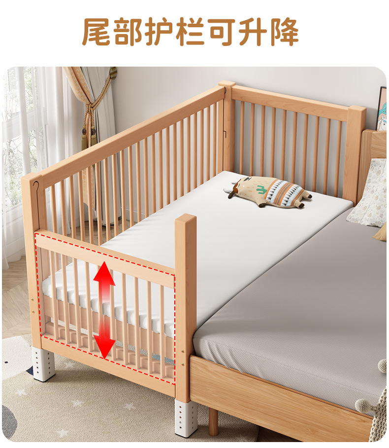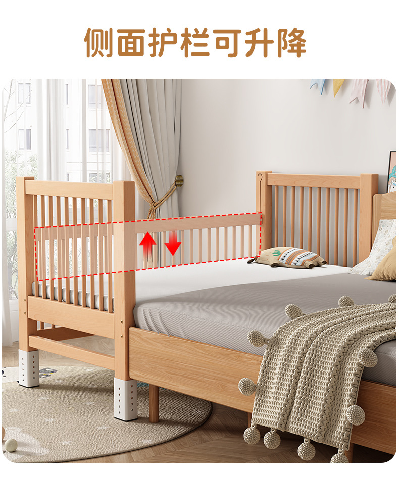 Seamless Yanbian Bed Baby s Small Bed Elevating Guardrail Liftable New Beech Children s Splicing Bed Widened Big Bed