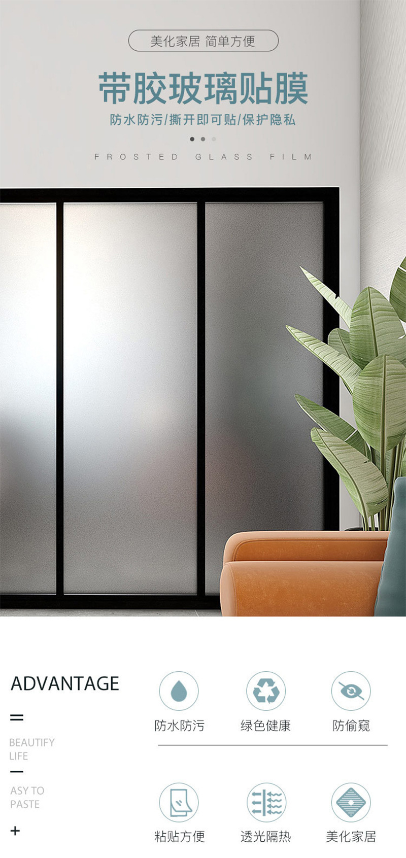Self adhesive Frosted Glass Sticker Office Window Privacy proof Glue free Glass Sticker Transparent Opaque Glass Sticker
