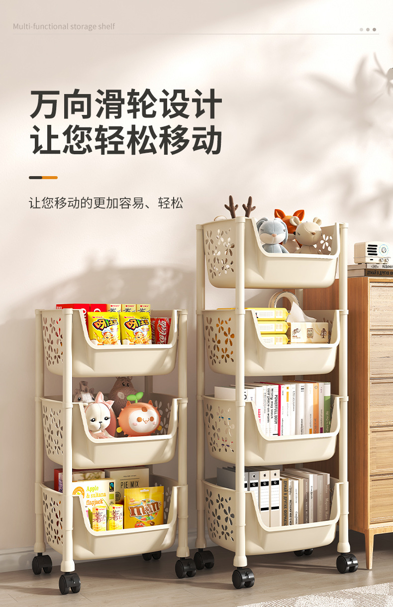 Seven Kitchen Storage Rack Vegetable Rack Floor Snack Trolley Multi layer Storage Rack Movable Vegetable Basket