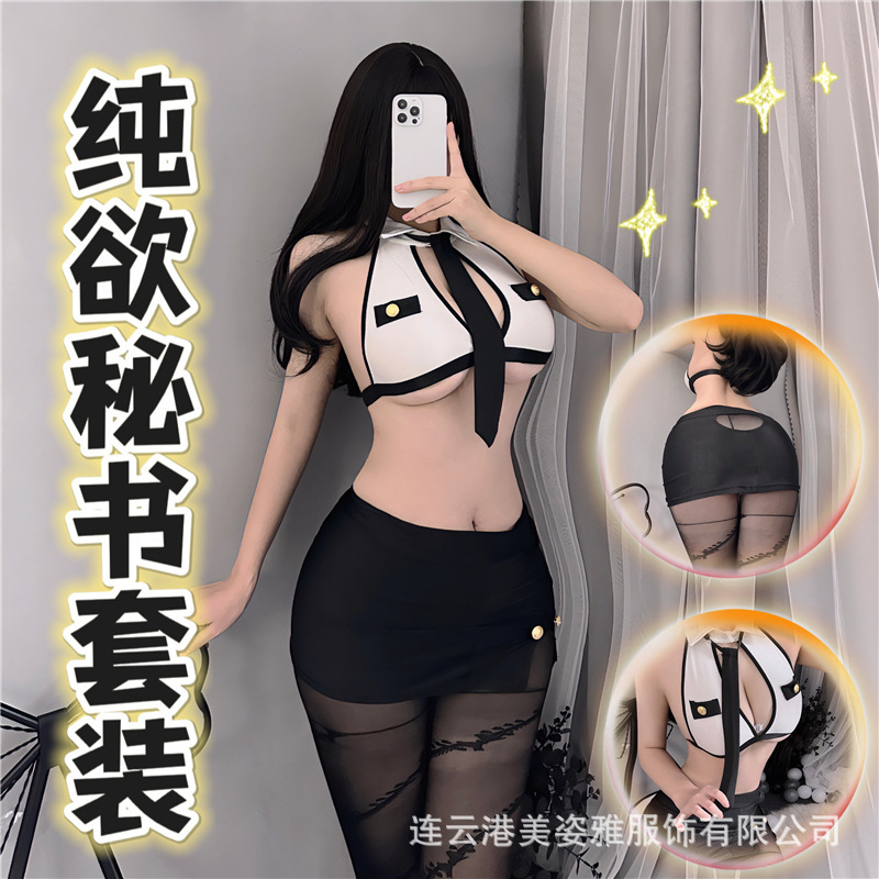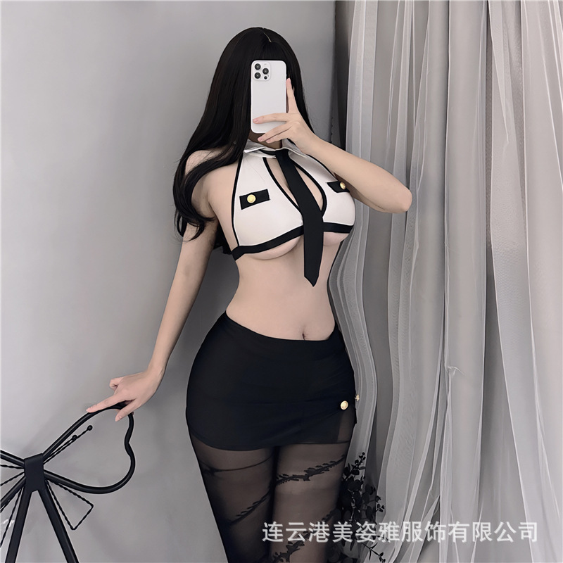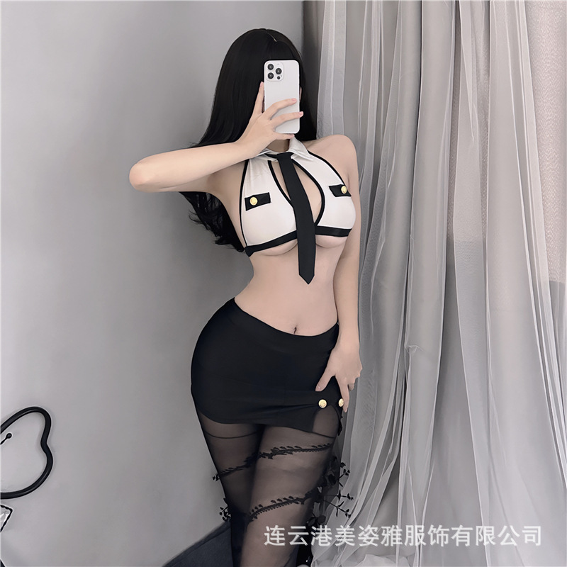 Sex underwear police uniform role playing pure desire to show one s chest three point wrap hip skirt tie OL secretary neck temptation