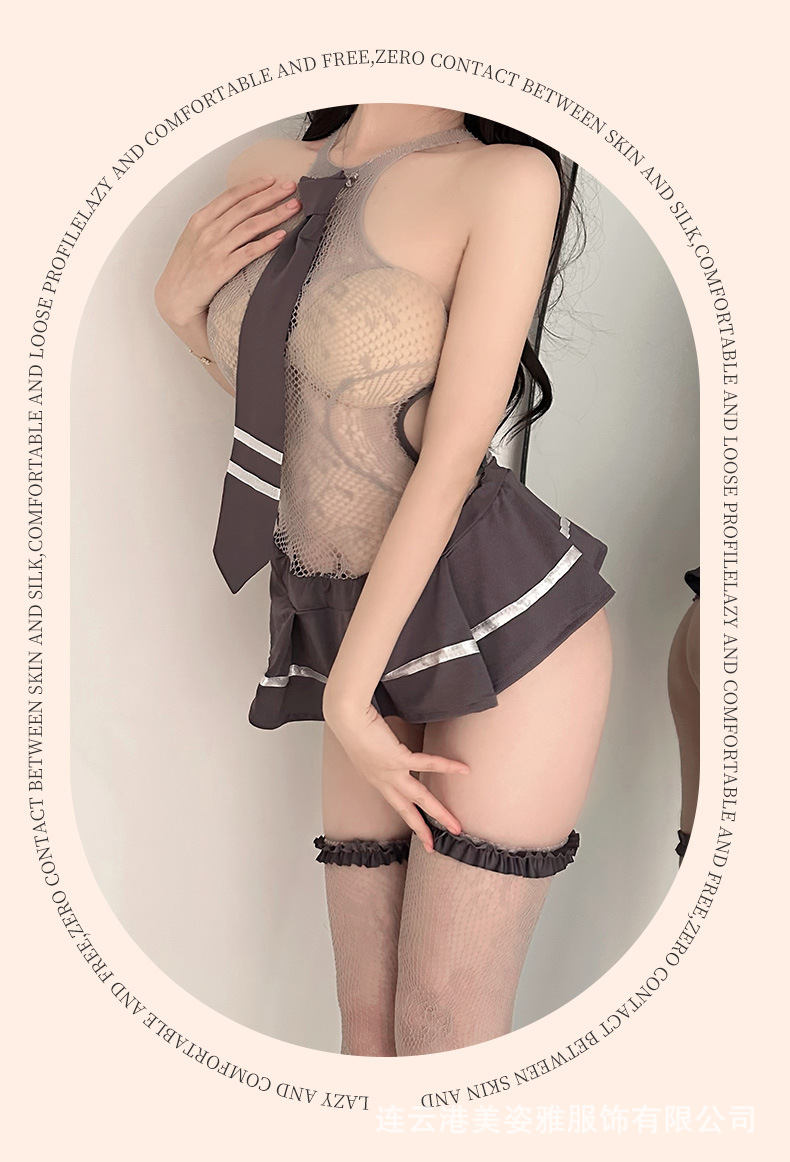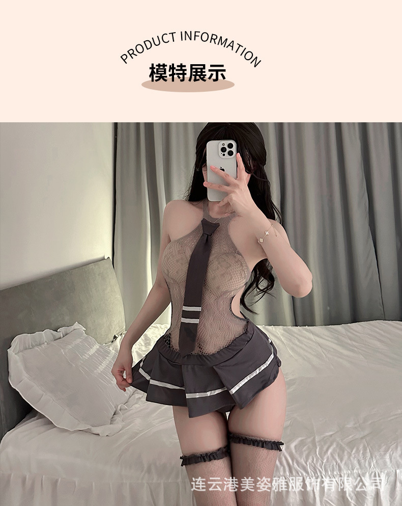 Sexy Lingerie Japanese Sexy Student JK Uniform suit Pure Desire Hot Girl Jumpsuit Pleated Skirt Neck Women