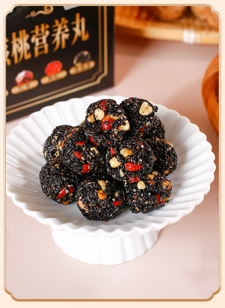 Shanliang uncle black sesame pills walnut red dates medlar black Mulberry black sesame pills nutrition healthy snacks wholesale