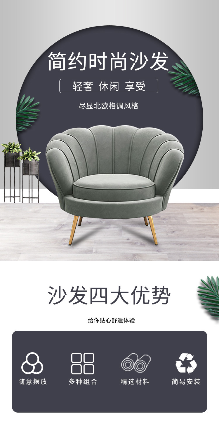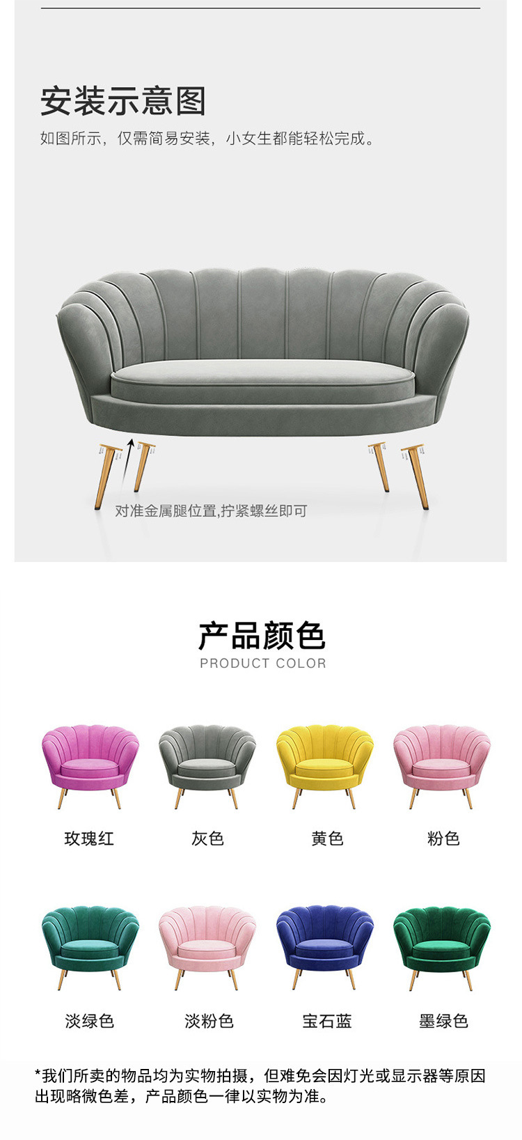 Shell Fabric Sofa Light Luxury Single and Double Sofa Negotiation Commercial Small Apartment Internet Celebrity Shop Lazy Sofa Chair