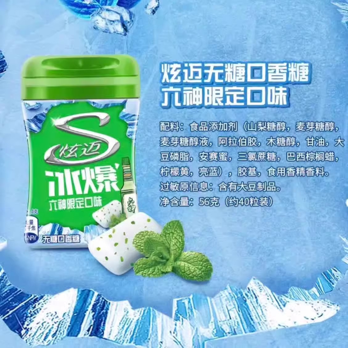 - [Bottled] Ice-popped Sugar-free Chewing Gum-Liushen Taste 56g