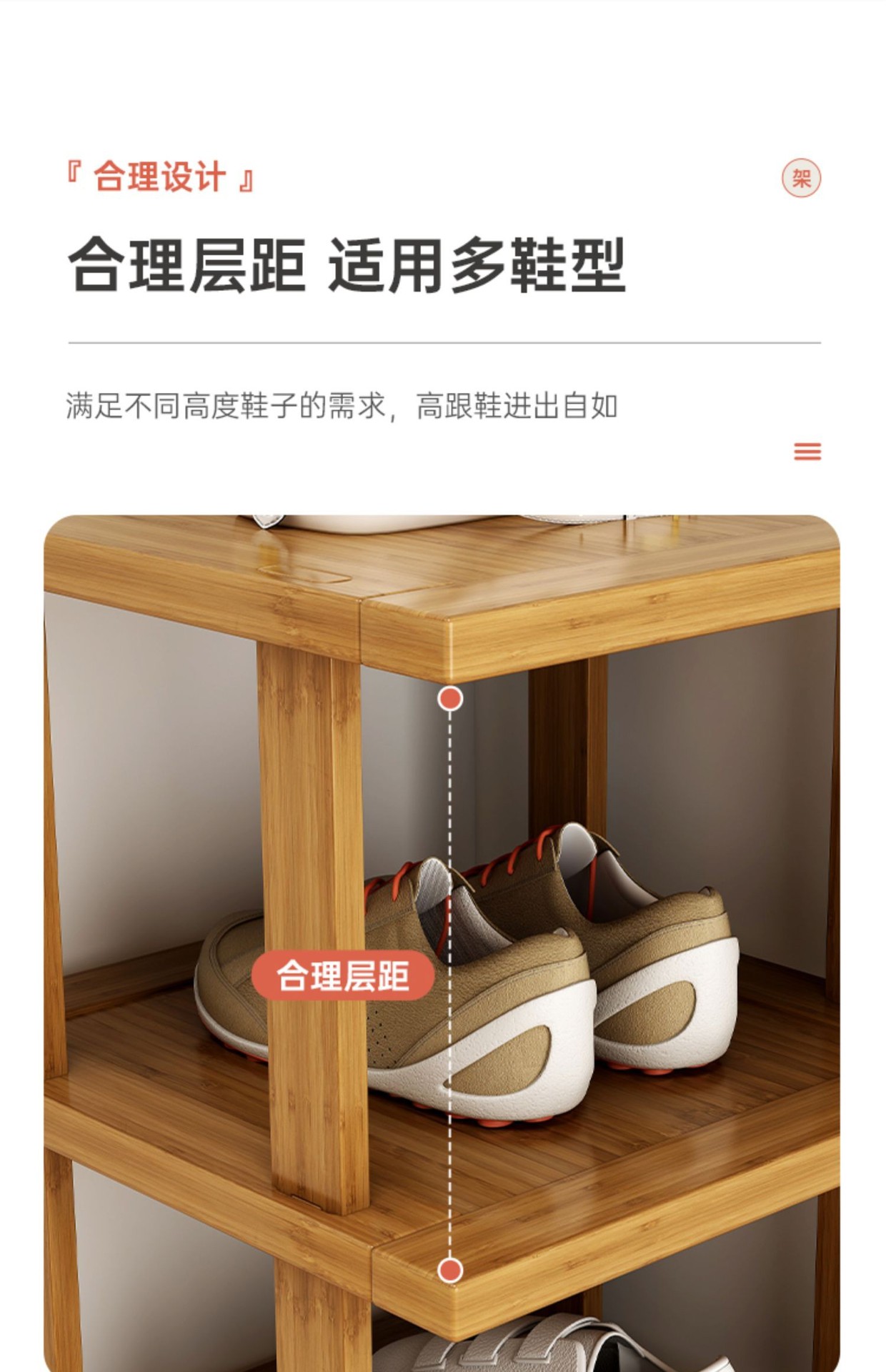Shoe Rack bamboo household small narrow simple shoe cabinet small apartment indoor storage space-saving storage rack at the door of rental house